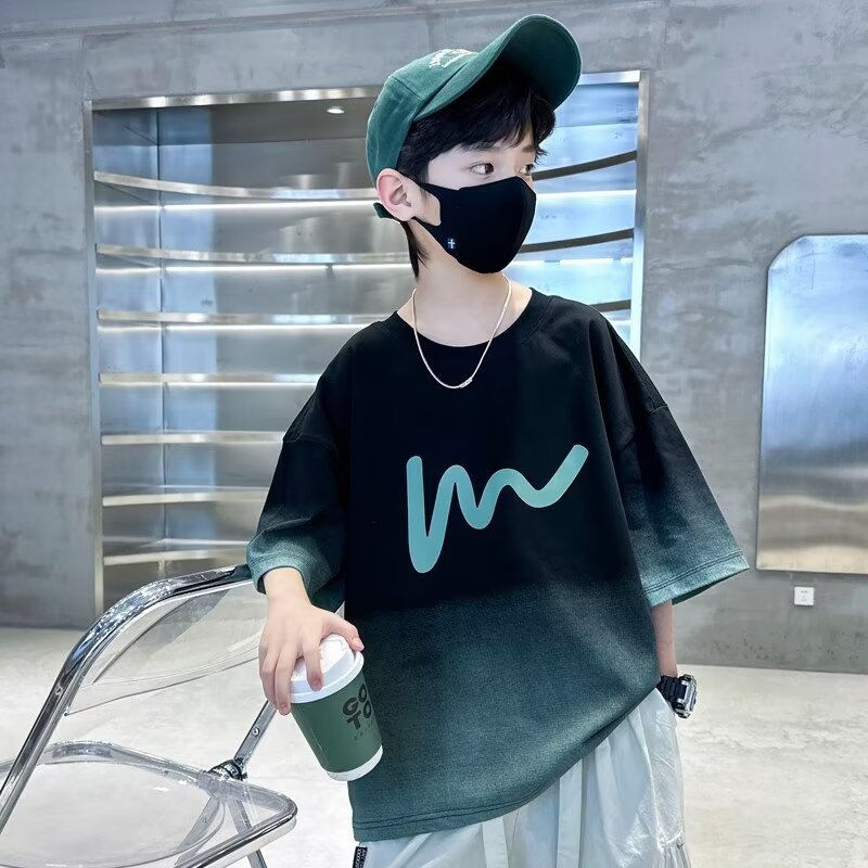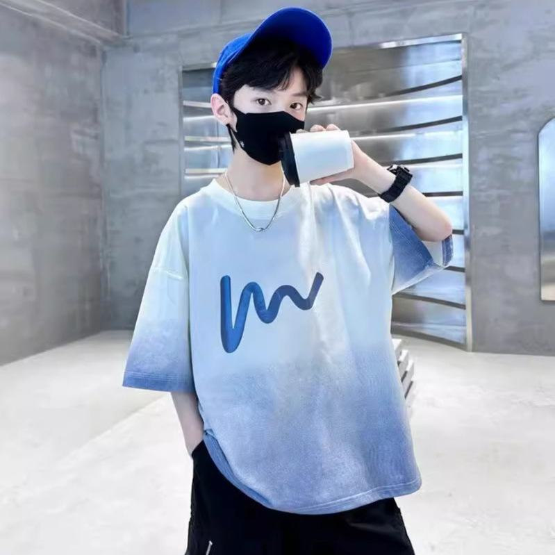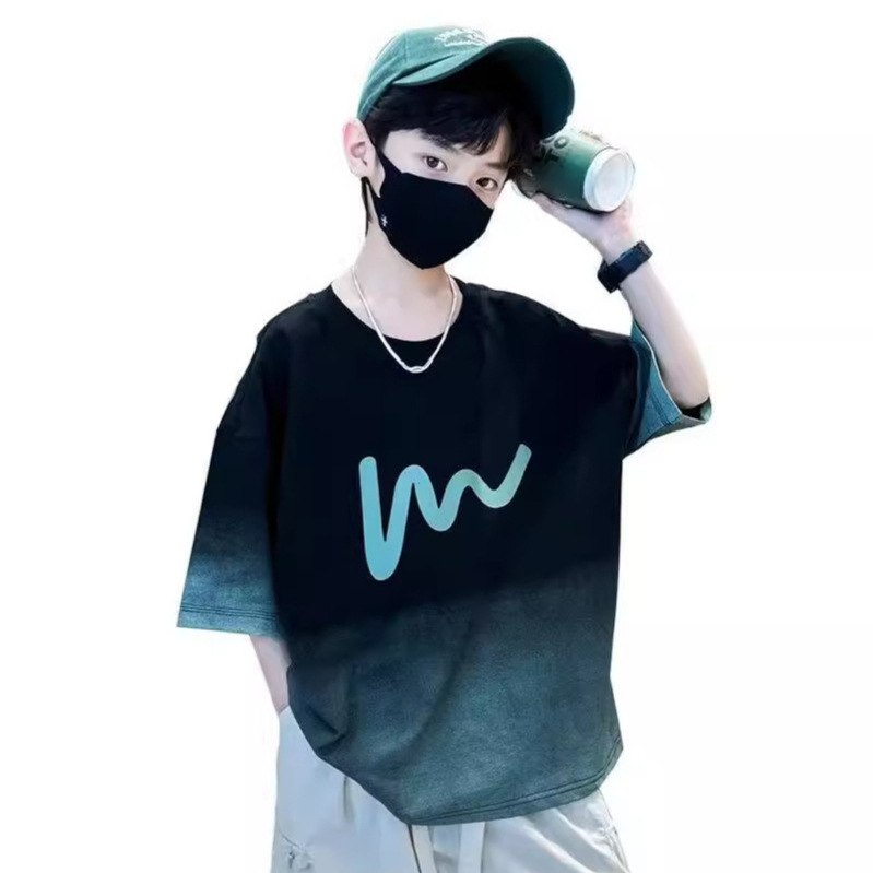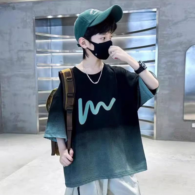 儿童潮流印花童装短袖T恤男童夏季新款儿童渐变色T恤炸街跨境