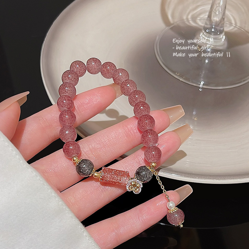 轻奢小众草莓晶珍珠花朵手链女ins潮百搭气质莲藕吊坠手串手饰品