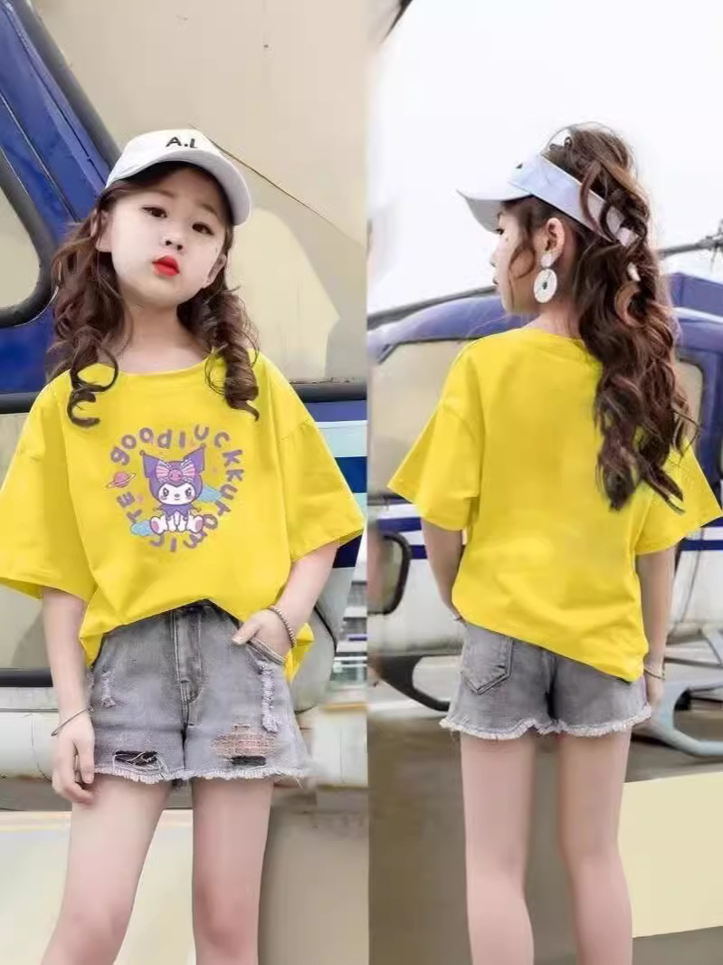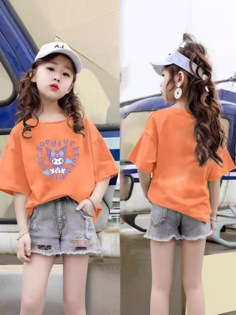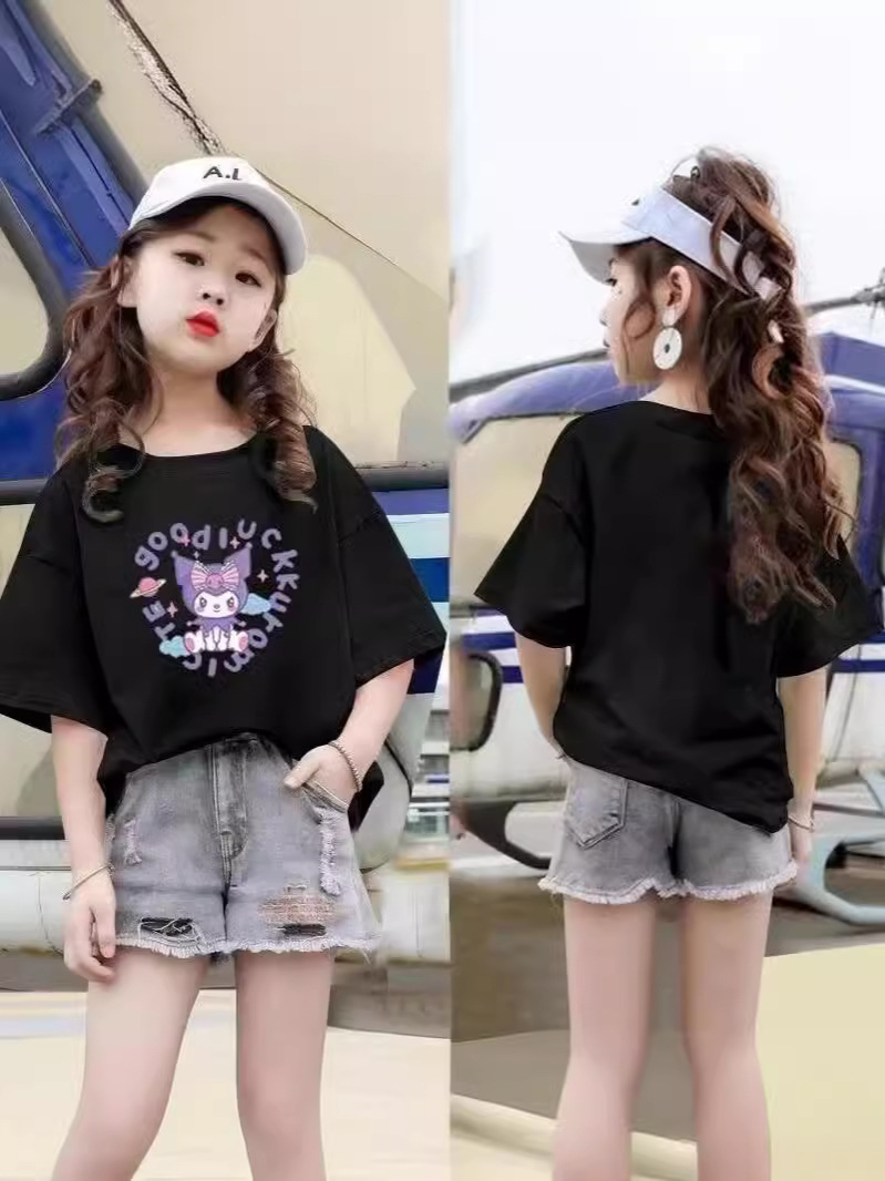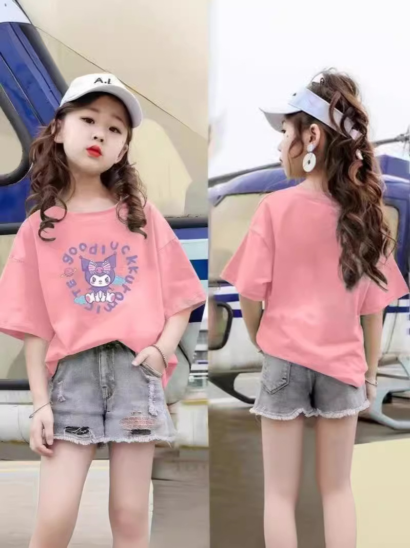 儿童夏季T恤新款夏季女童卡通小库洛半袖中大童炸街短袖上衣