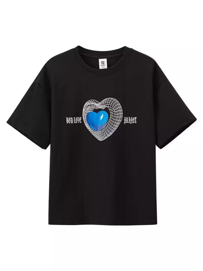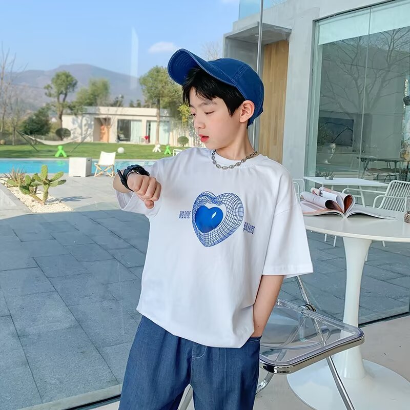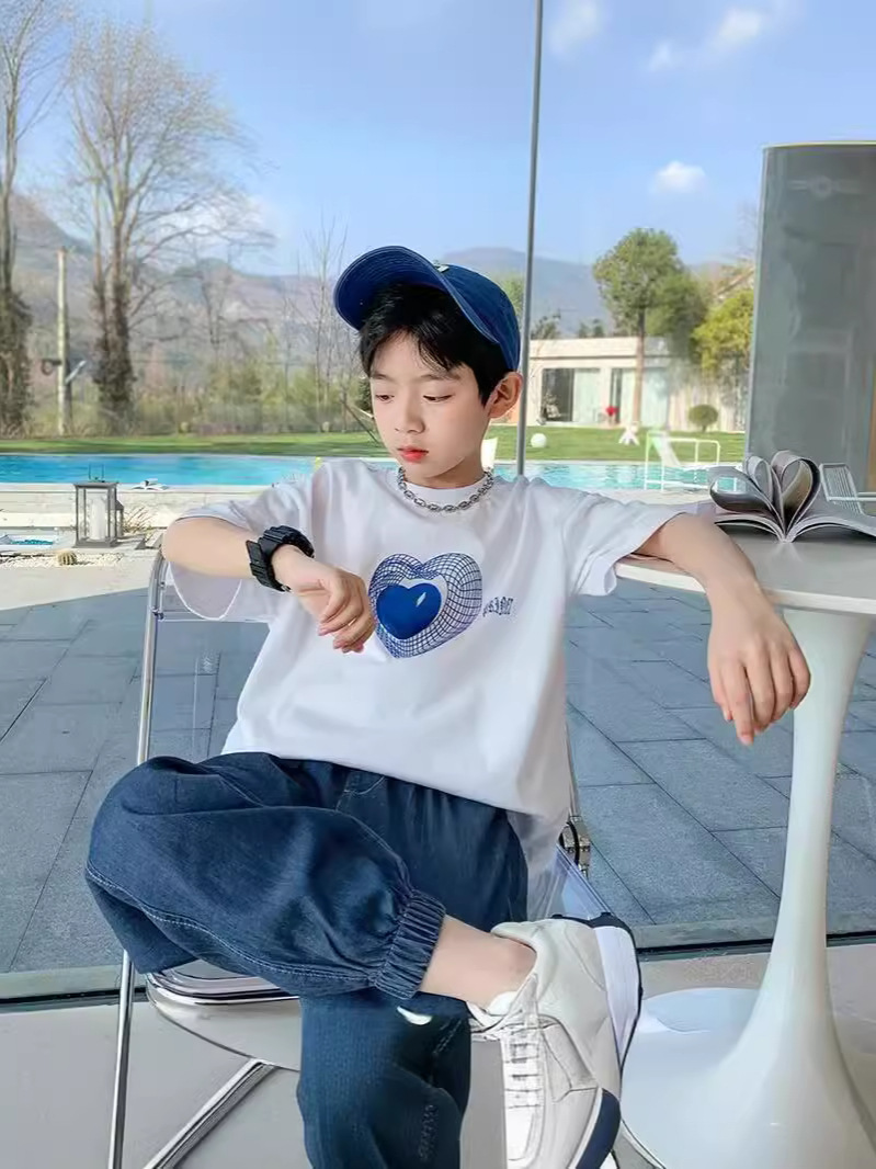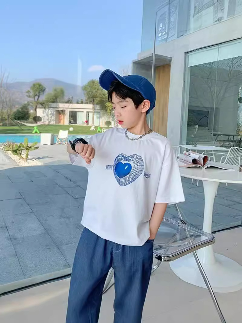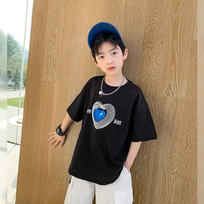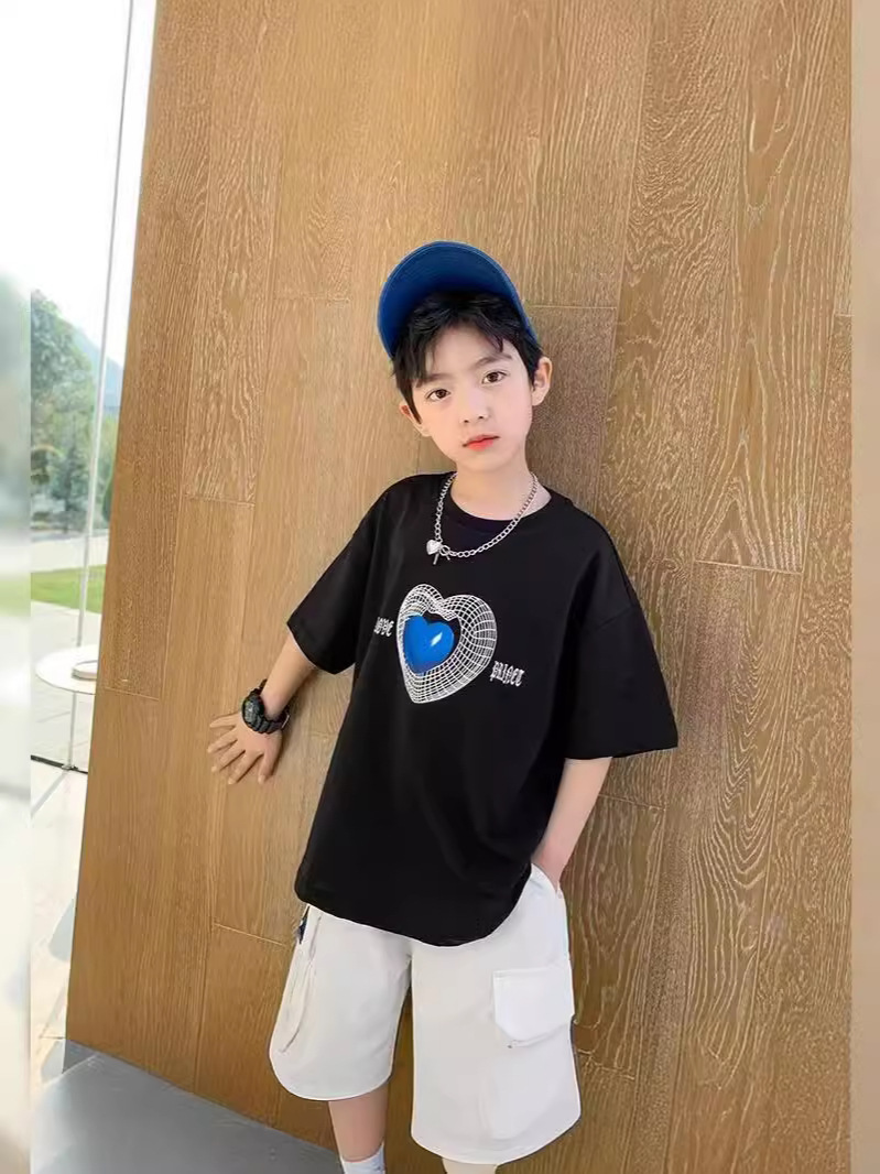 新款儿童上衣夏季棉质男女童短袖T恤款宝宝半袖卡通爱心体恤