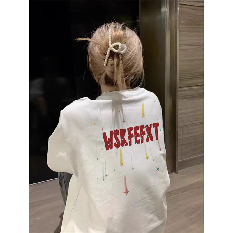 夏季纯棉白色短袖t恤女新款爆款正肩设计感美式半袖宽松上衣