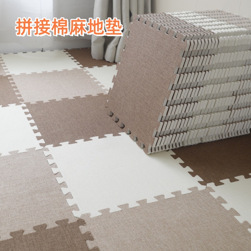 新款棉麻拼接地垫家用卧室飘窗客厅榻榻米加厚泡沫地板爬行垫隔音