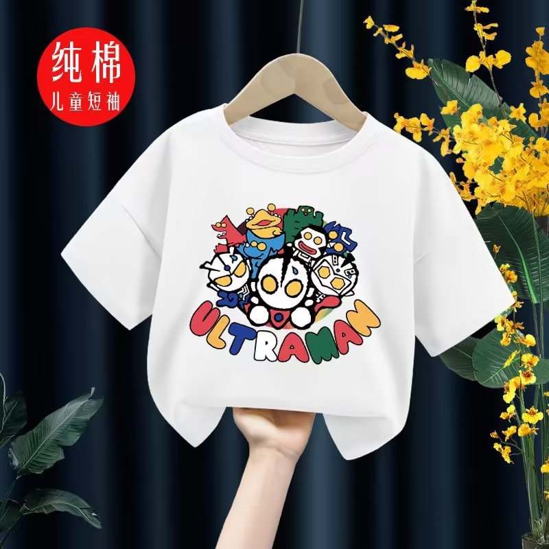 儿童涂鸦奥特曼印花t恤男童宝宝款中小童洋气潮夏季短袖跨境