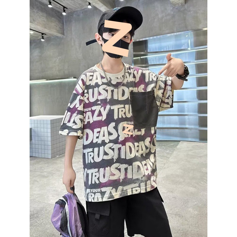 跨境男童夏季短袖T恤新款中大儿童夏装男孩半袖上衣痞帅潮牌