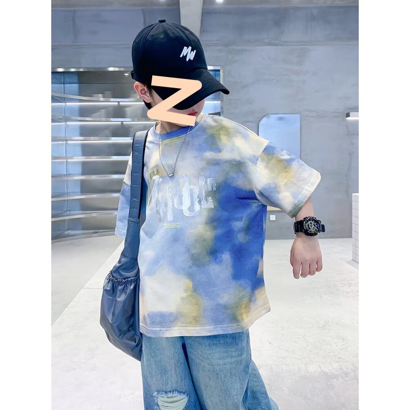 男大童夏季扎染冰丝短袖t恤新款儿童男孩夏装痞帅宽松上衣潮