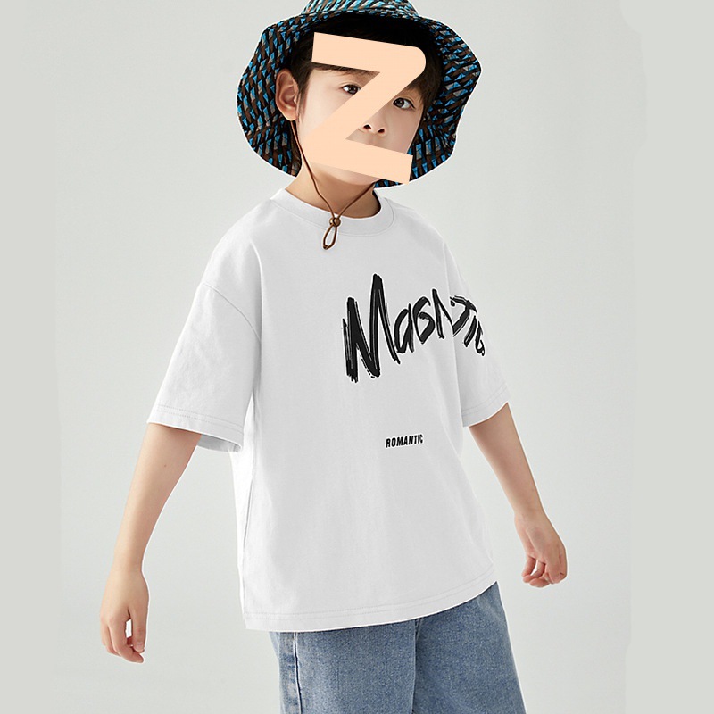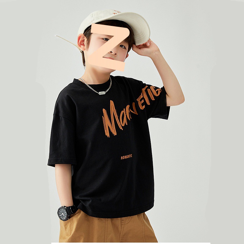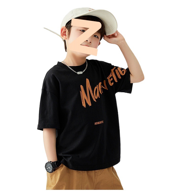 跨境男童短袖T恤夏装新款儿童中大童舒适大字母印花潮流上衣