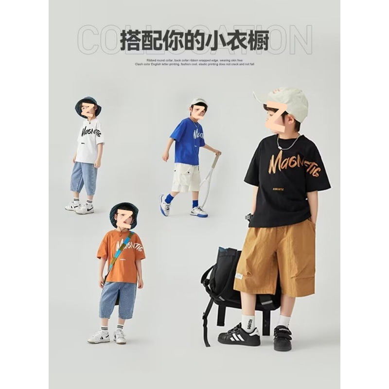男童短袖T恤纯棉夏季新款圆领中大童字母帅气酷宽松半袖t上衣潮