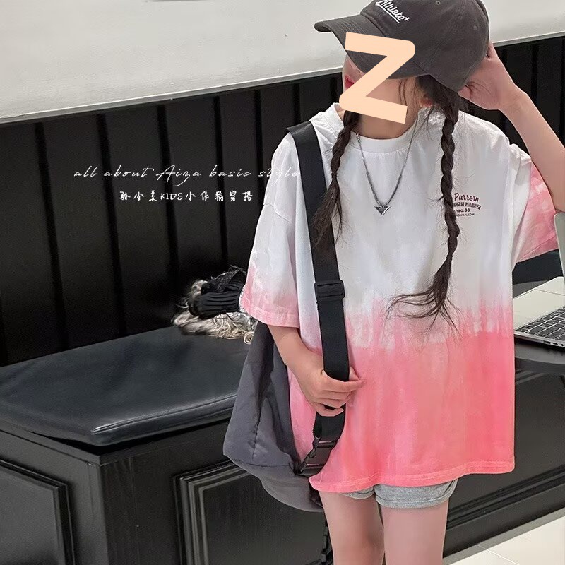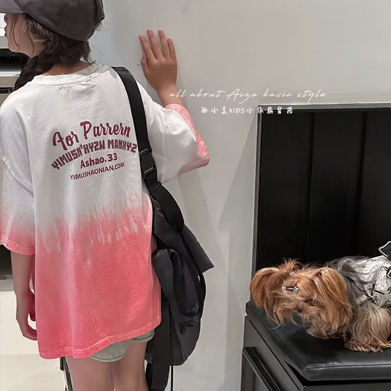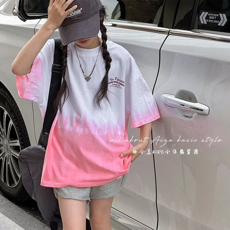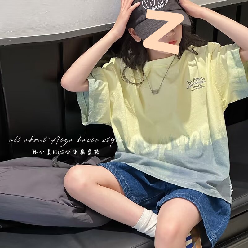 跨境扎染设计女童短袖T恤儿童宽松上衣夏装新款韩国童装体恤