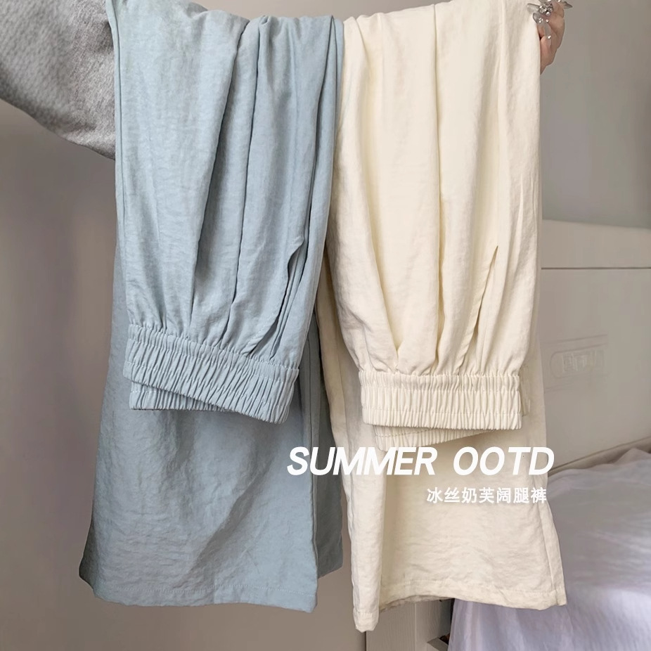 抖音质量冰丝奶芙山本裤女2025夏季高腰垂感直筒拖地裤慵懒阔腿裤