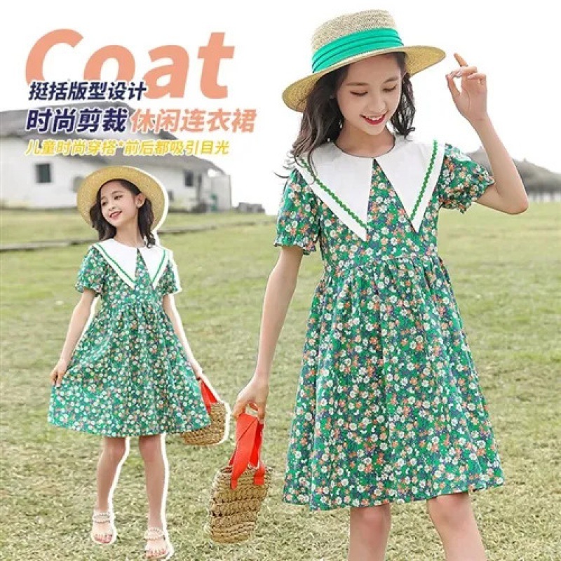 夏季女童碎花连衣裙翻领海军风短袖碎花裙子中小童洋气公主裙
