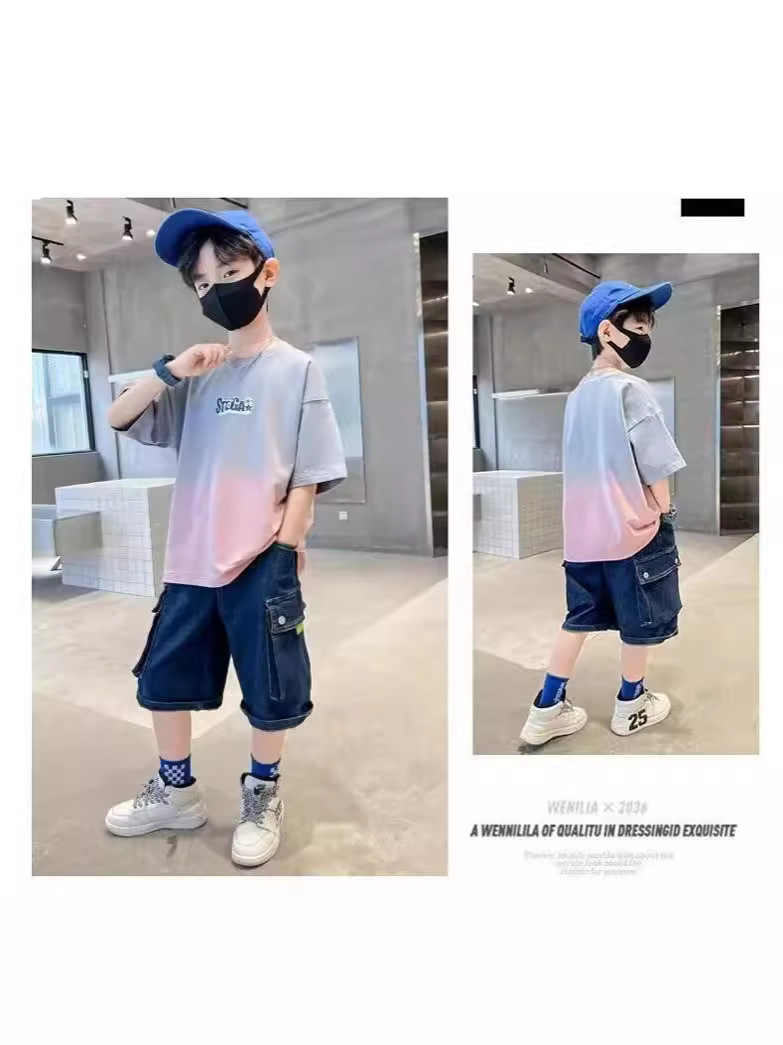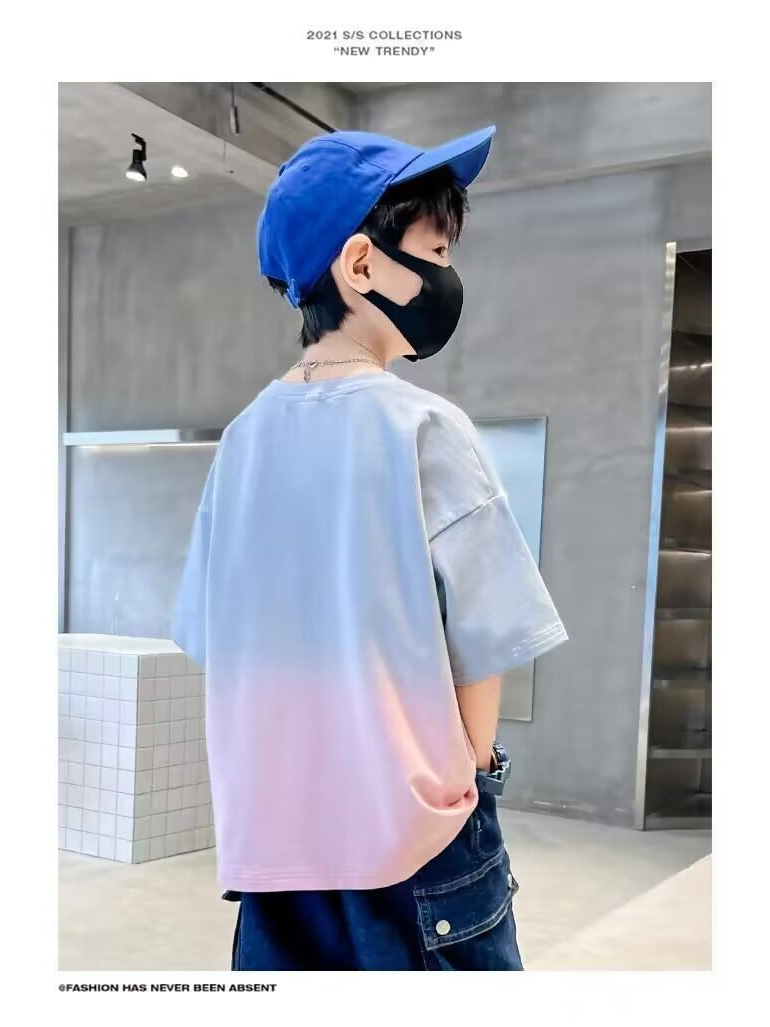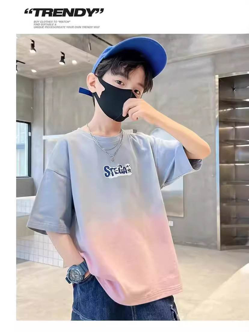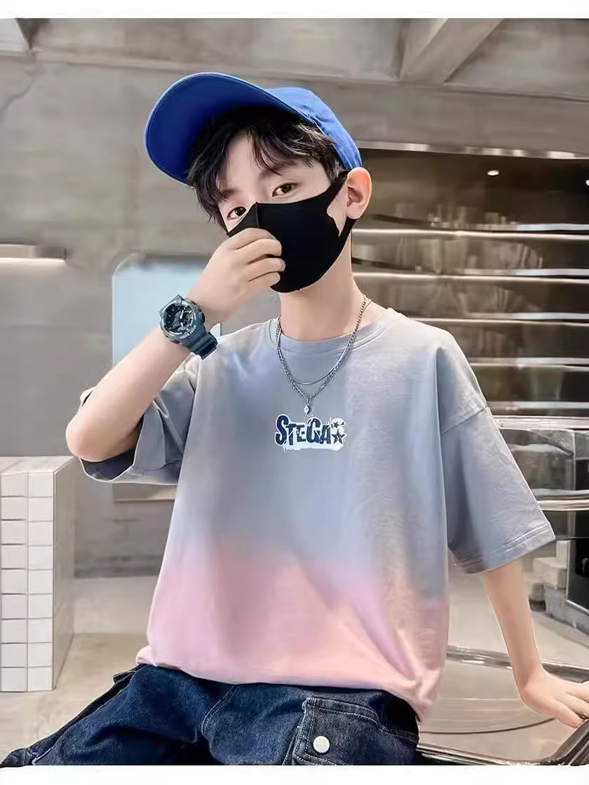 男童夏装短袖渐变半袖上衣洋气夏季新款儿童大童帅气潮流T恤