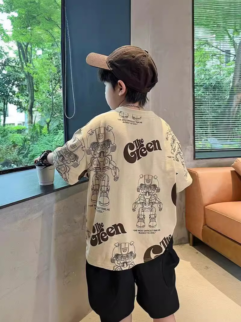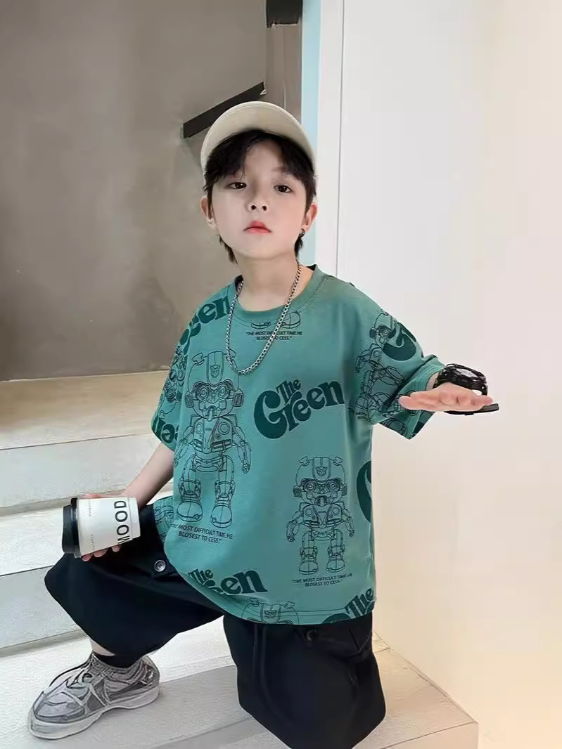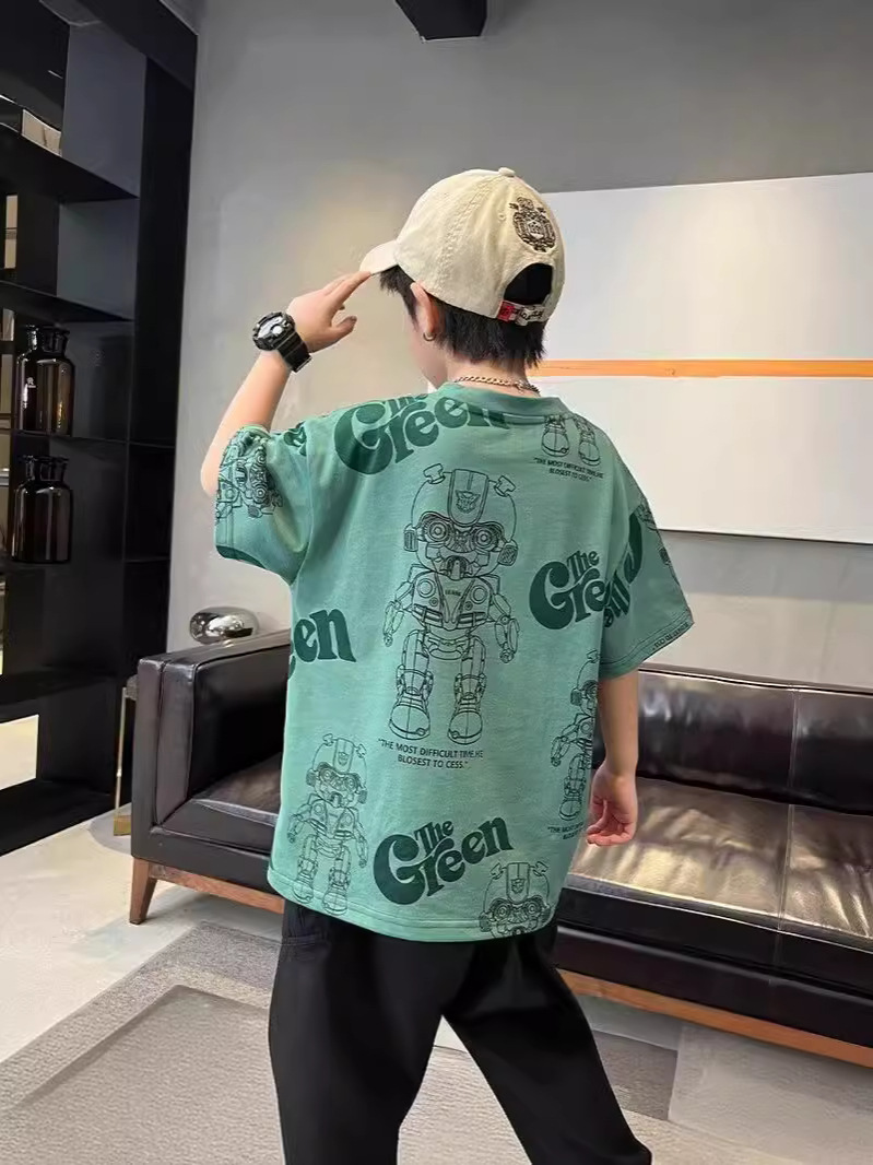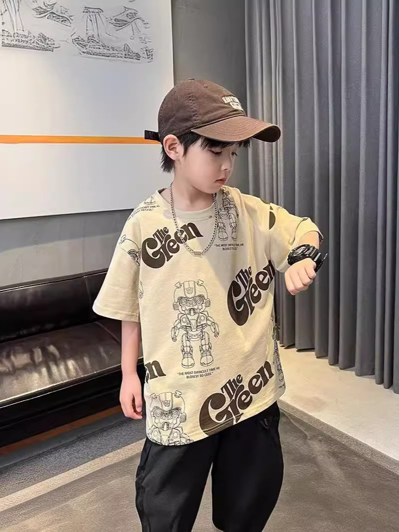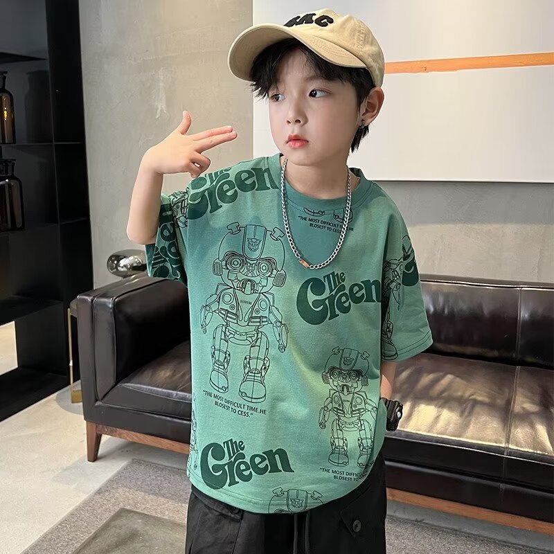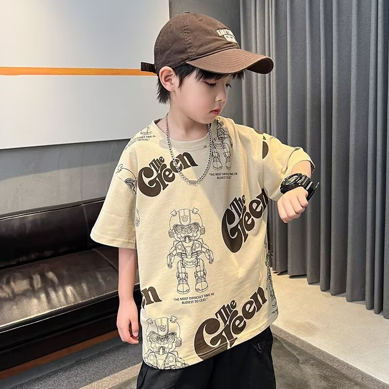 男童夏季短袖帅气童装满印卡通t袖半袖中大童炸街舒适上衣潮
