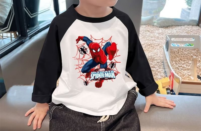 童装韩版长袖T恤春秋新款男女童印花蜘蛛休闲打底衫秋款上衣