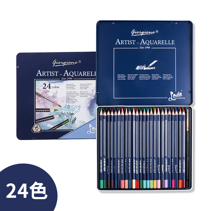 乔尔乔内水溶性彩铅笔套装72色彩色粗三角原木绘画儿童彩铅