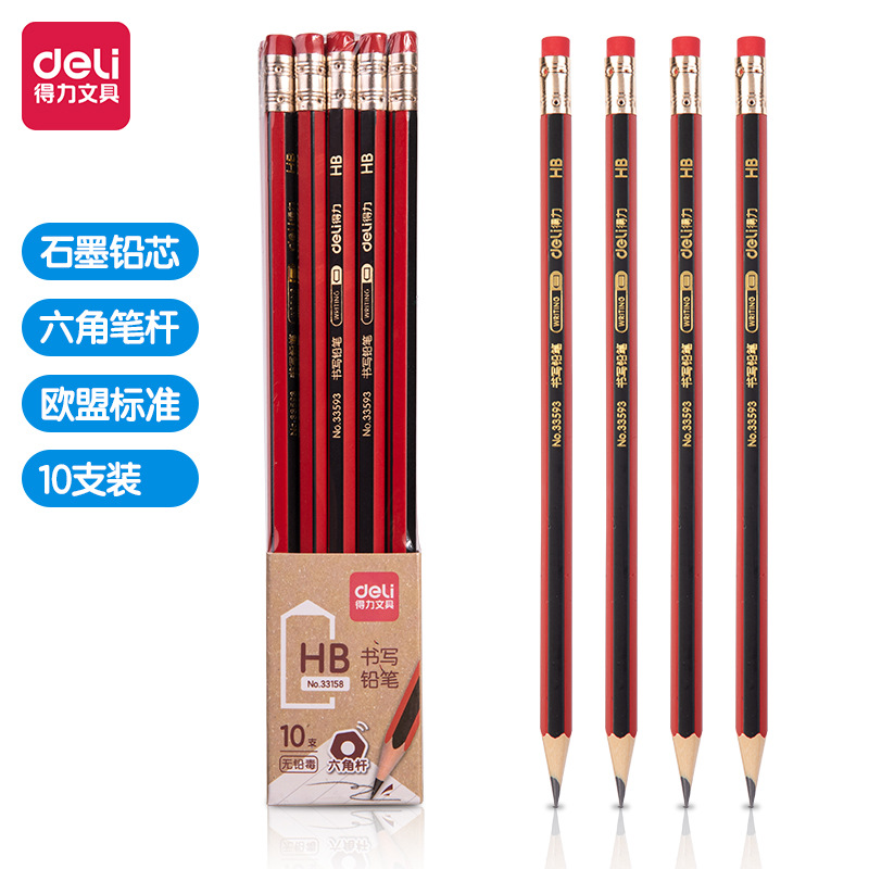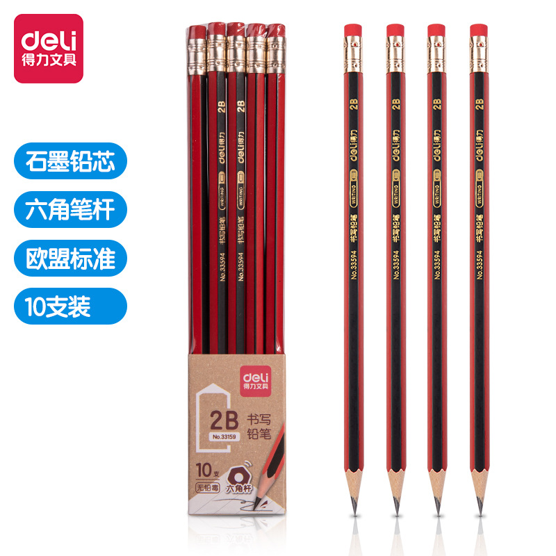 得力2b铅笔33311小学生hb书写六角杆考试素描笔10支儿童文具用品
