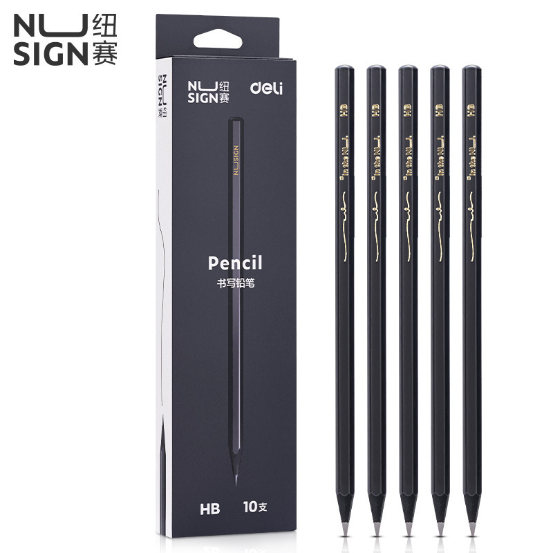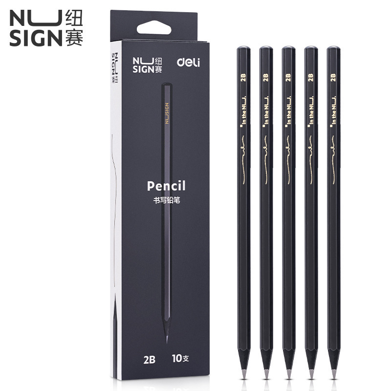 得力纽赛2B铅笔幼儿园黑木HB铅笔10支装小学生六角书写铅笔文具