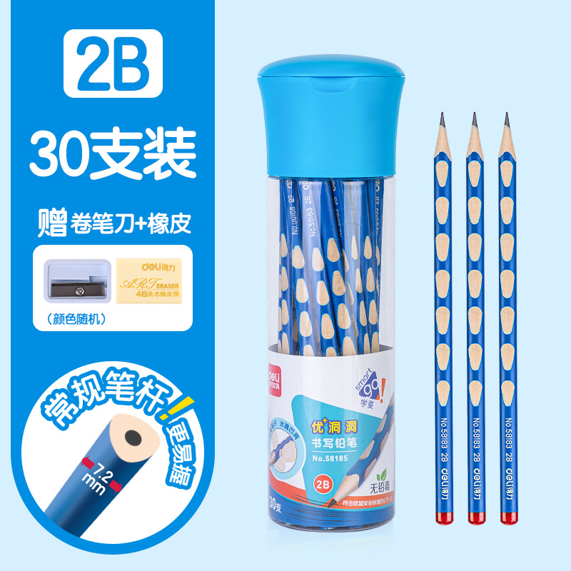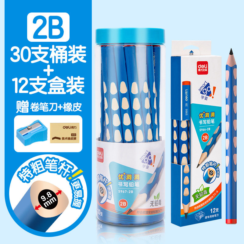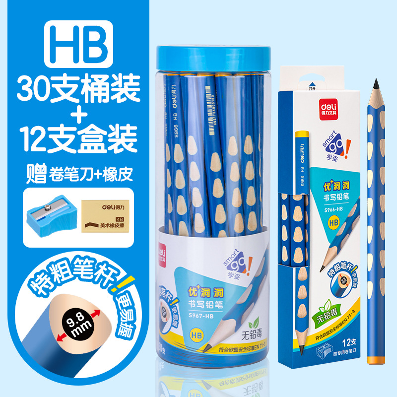 得力洞洞铅笔小学生专用2B铅笔矫正握姿HB2考试涂卡正品安全无毒