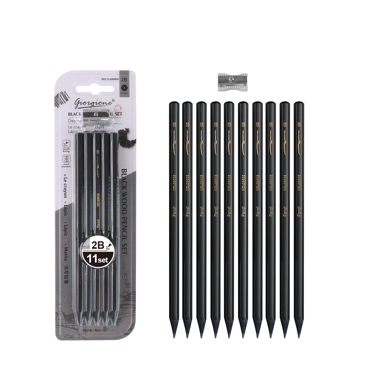 乔尔乔内黑木铅笔2b/hb一盒素描工具套装可擦吸卡小学生