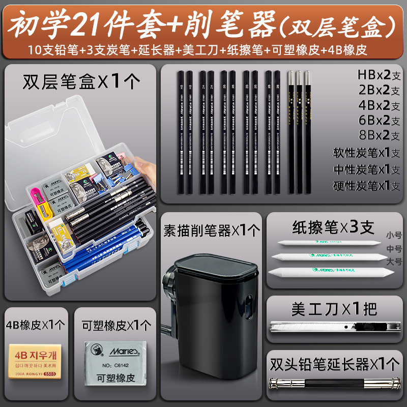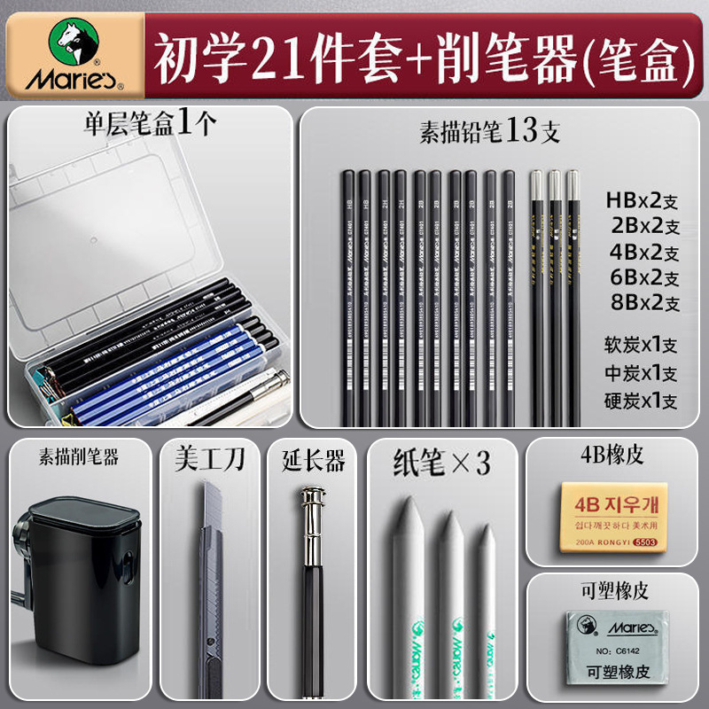 马利素描工具套装初学者入门素描铅笔套装美术生培训绘画专用炭笔