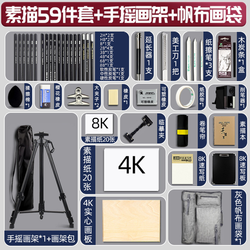 - 马利铅笔素描59件套-手摇画架-画板-画袋-削笔器-速写板