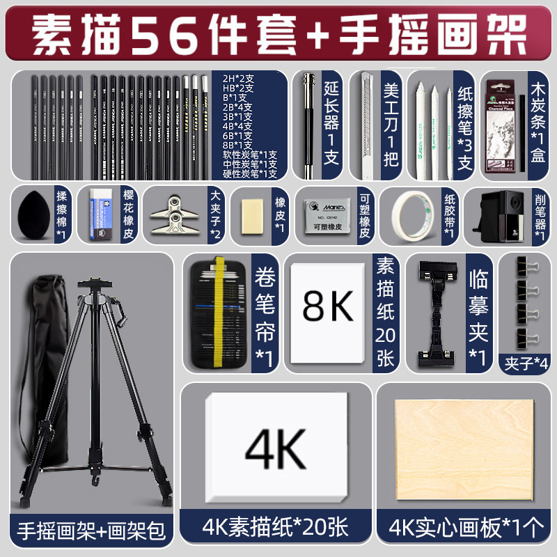 - 马利铅笔素描54件套-手摇画架-4K实心画板