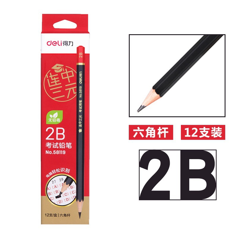 得力文具58119考试2B铅笔书写笔素描笔儿童小学生12支装铅笔