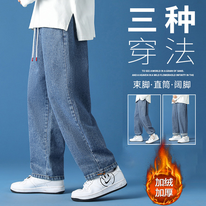 九分男生潮牌港风牛仔裤男士高街ins休闲直筒宽松阔腿长裤