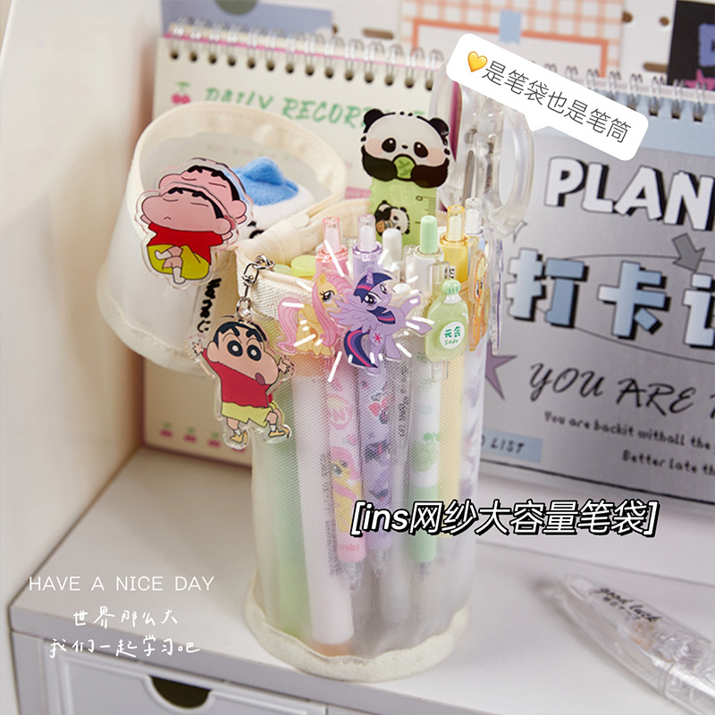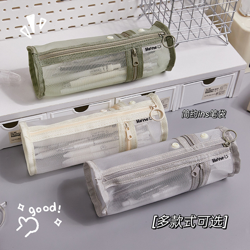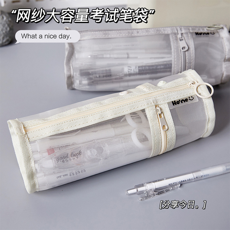 透明大容量网纱笔袋简约日系学生文具袋学生铅笔盒可带入考场笔筒