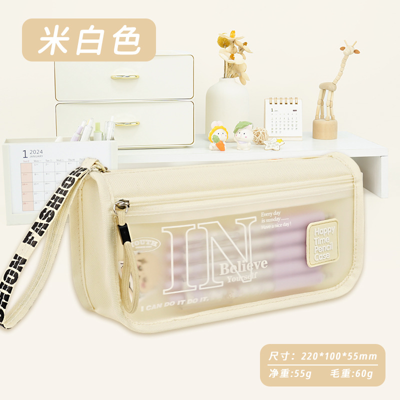 透明笔袋大容量双层高颜值女生文具盒初中生收纳铅笔盒小众ins风