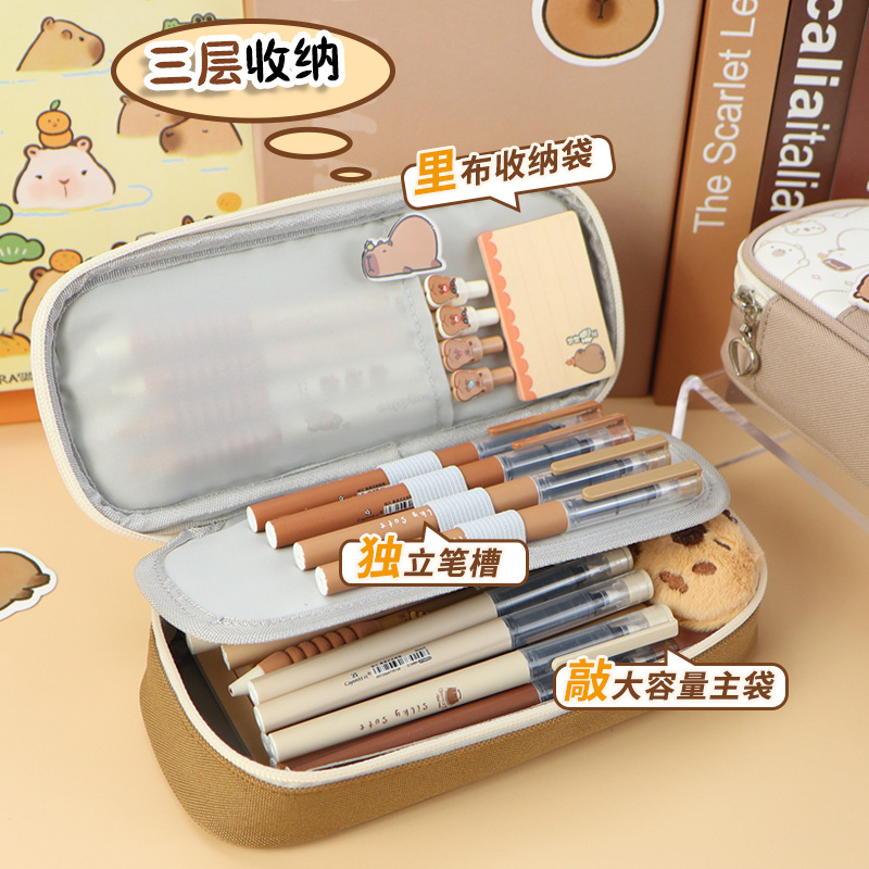 卡皮巴拉笔袋ins风小众巨能装大容量文具盒中小学生铅笔盒
