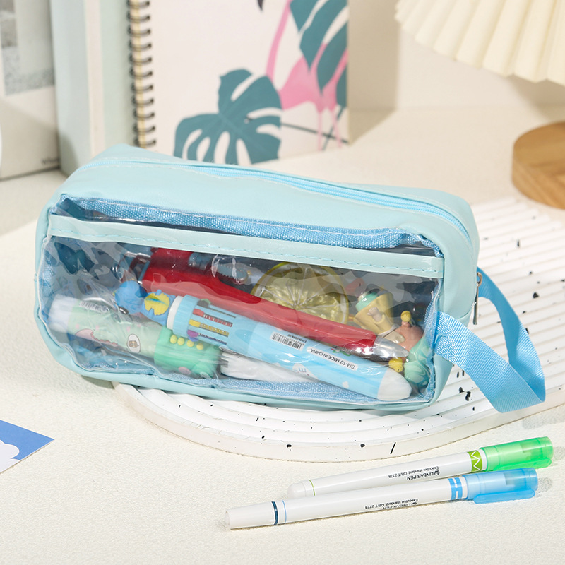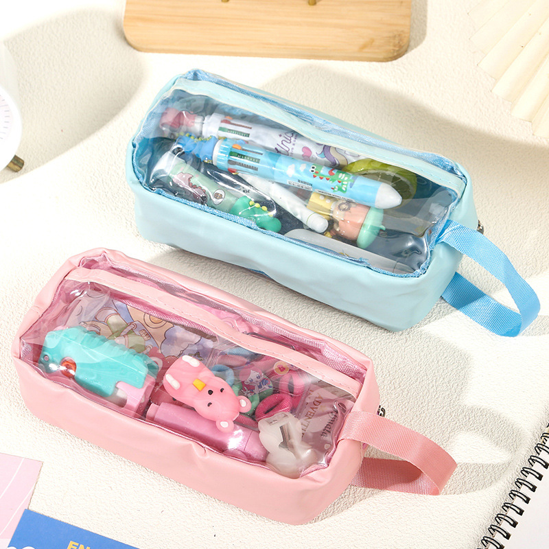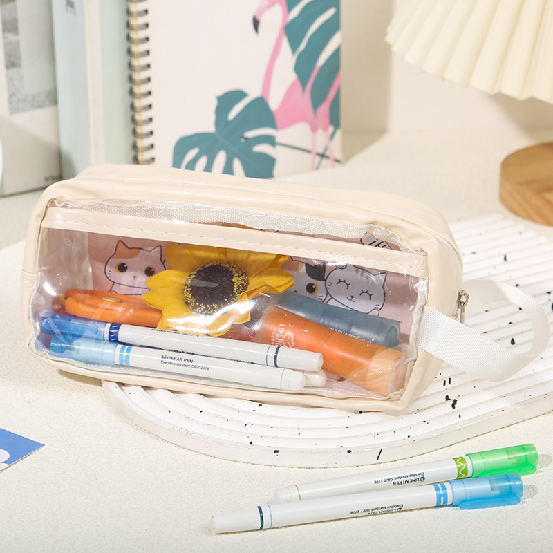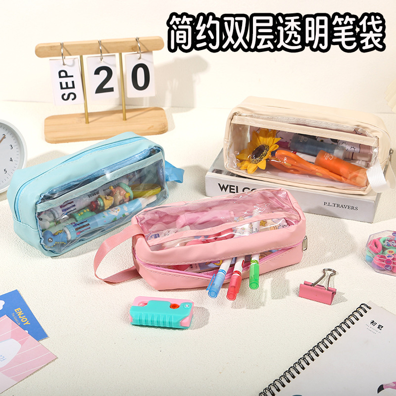 透明大容量可视笔袋简约ins初高中生文具盒小众奶盐系男女铅笔盒