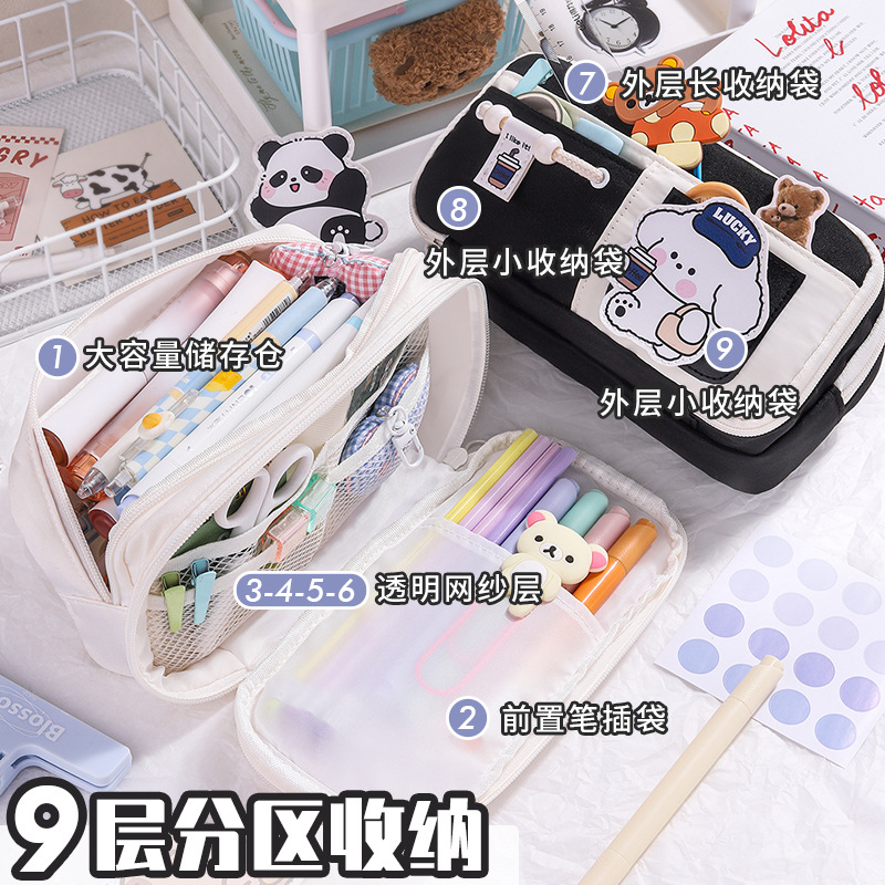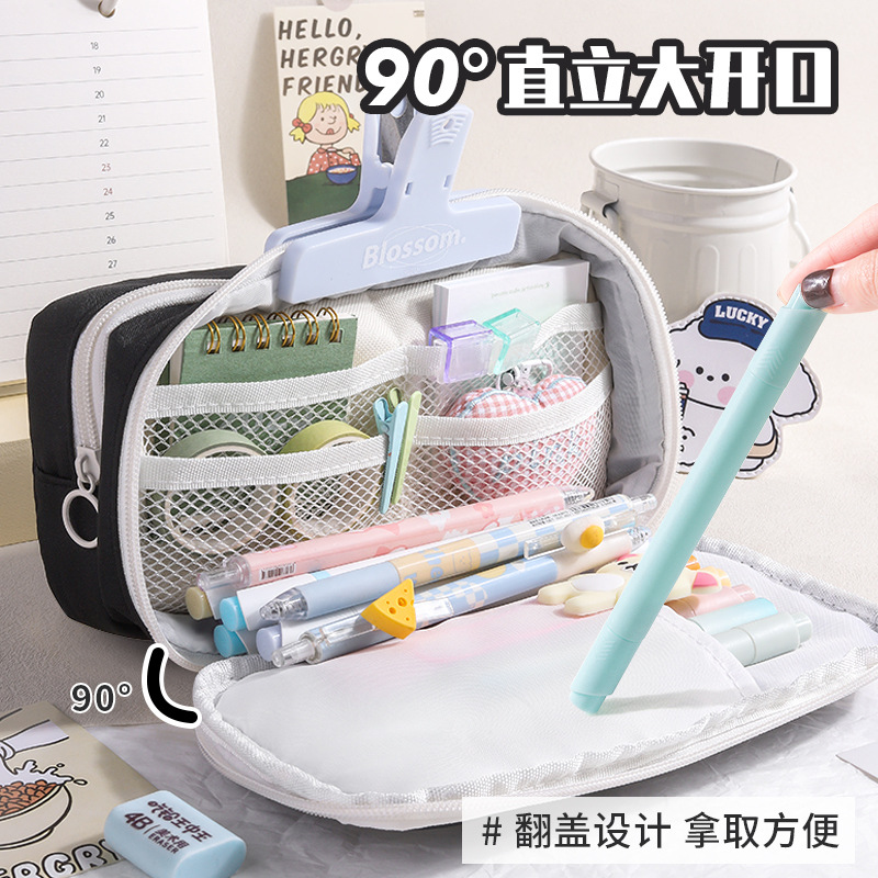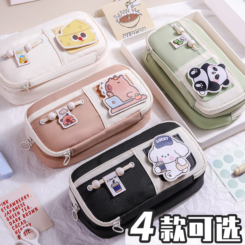 笔袋新款奶呼呼小众大容量文具盒可爱小学生高级高颜值魔术贴笔盒