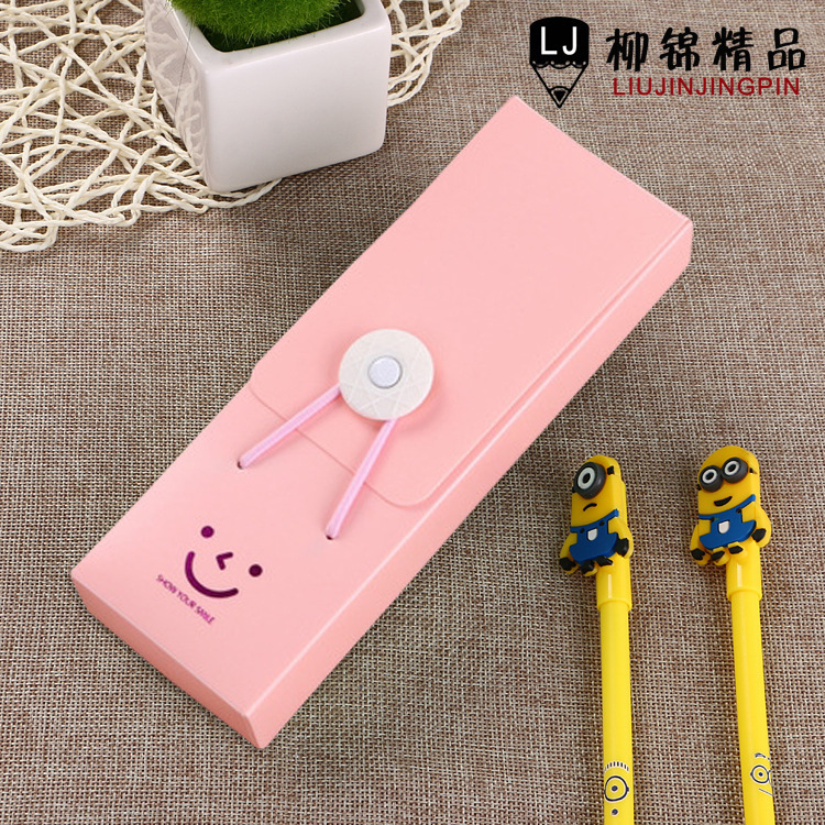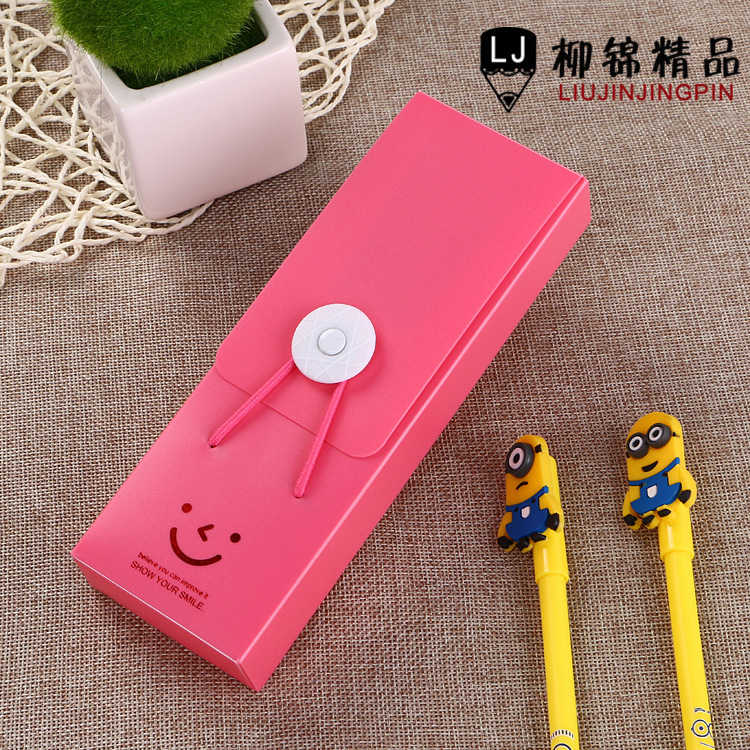 韩国多功能铅笔盒学生文具盒简约纯色笑脸笔袋零钱盒学习奖品