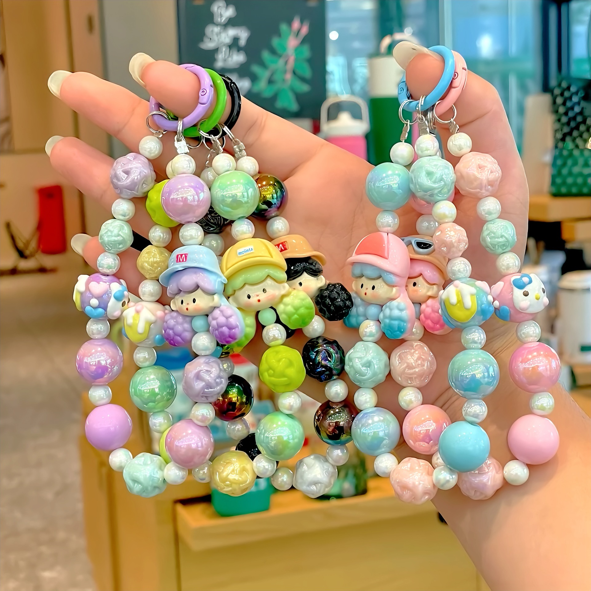 新款爆米花卡通手机链手绘珠串珠钥匙扣包包配饰手机挂件挂饰挂绳
