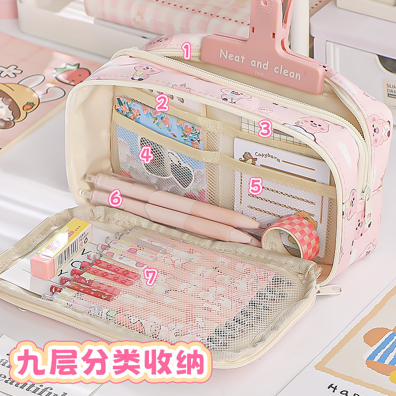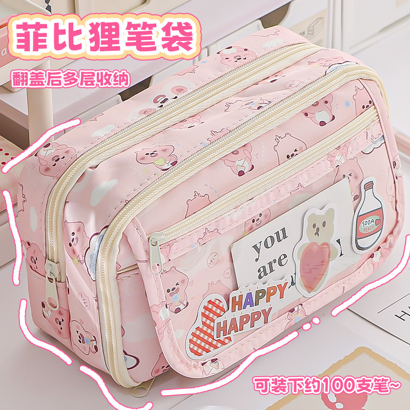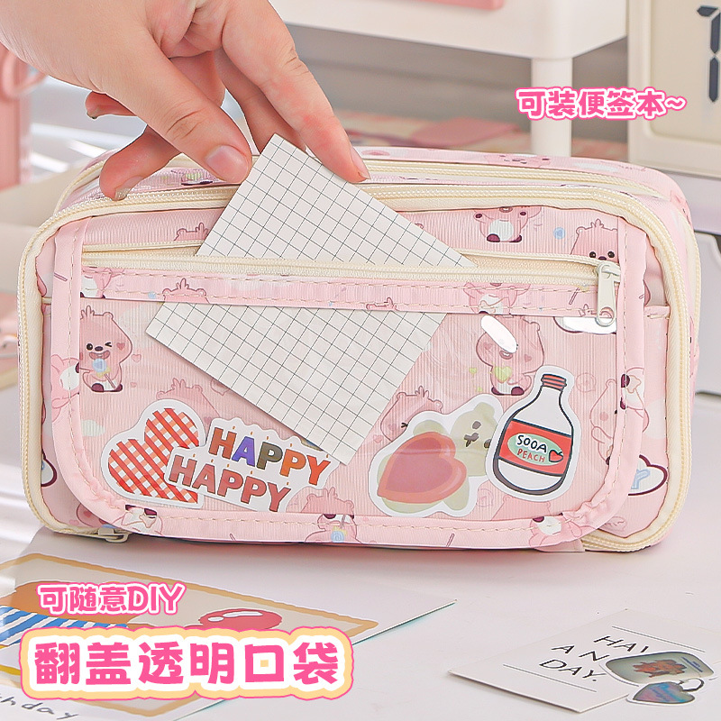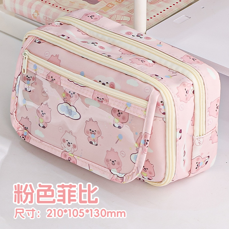 小海狸透明笔袋大容量可爱笔袋初中生高颜值中小学生文具袋高颜值