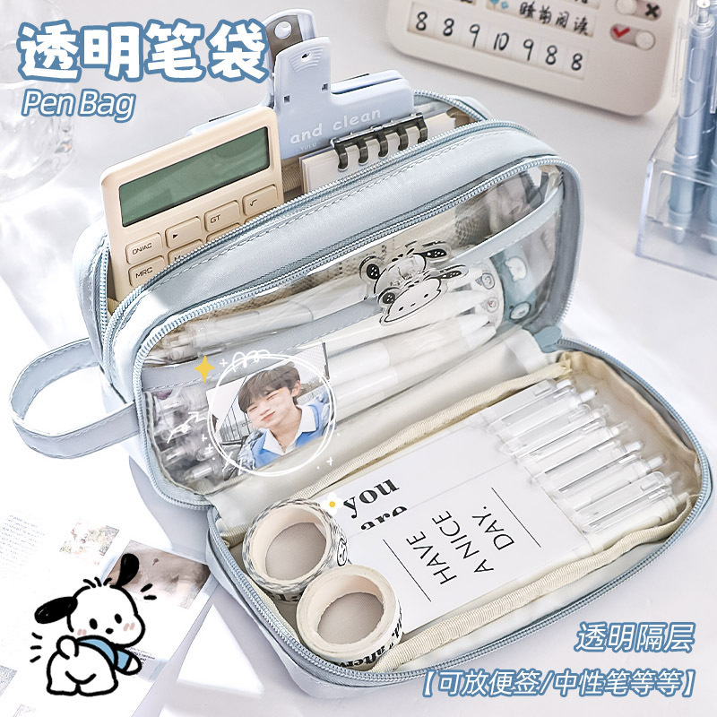 高颜值透明笔袋大容量小学生初中男女孩用简约高颜值文具铅笔盒