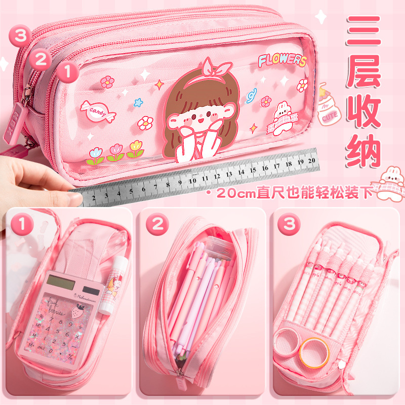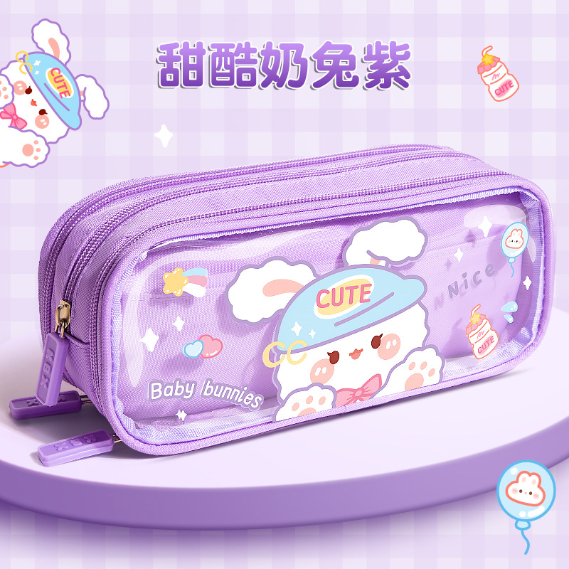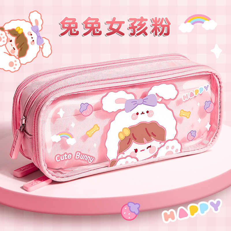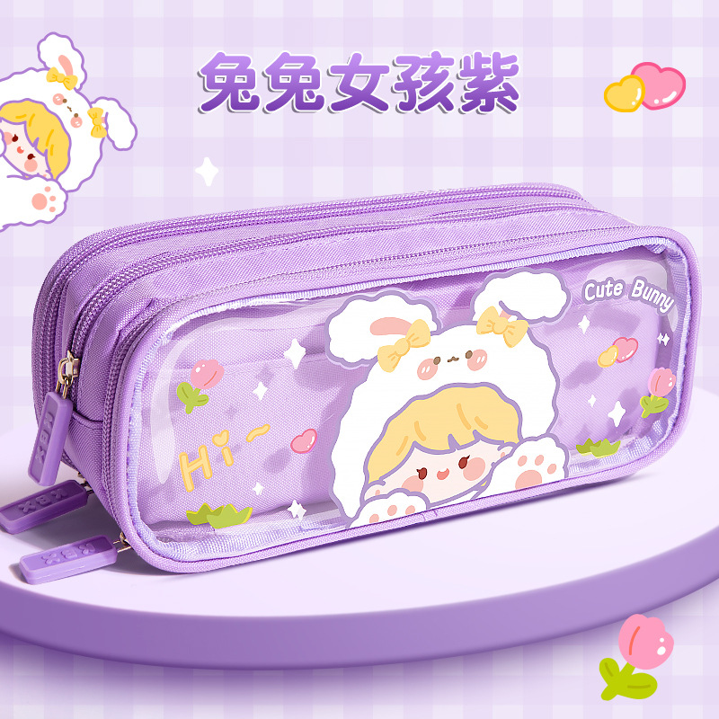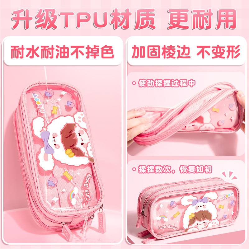 小学生专用透明笔袋女孩版卡通可爱文具铅笔盒帆布高颜值超大容量