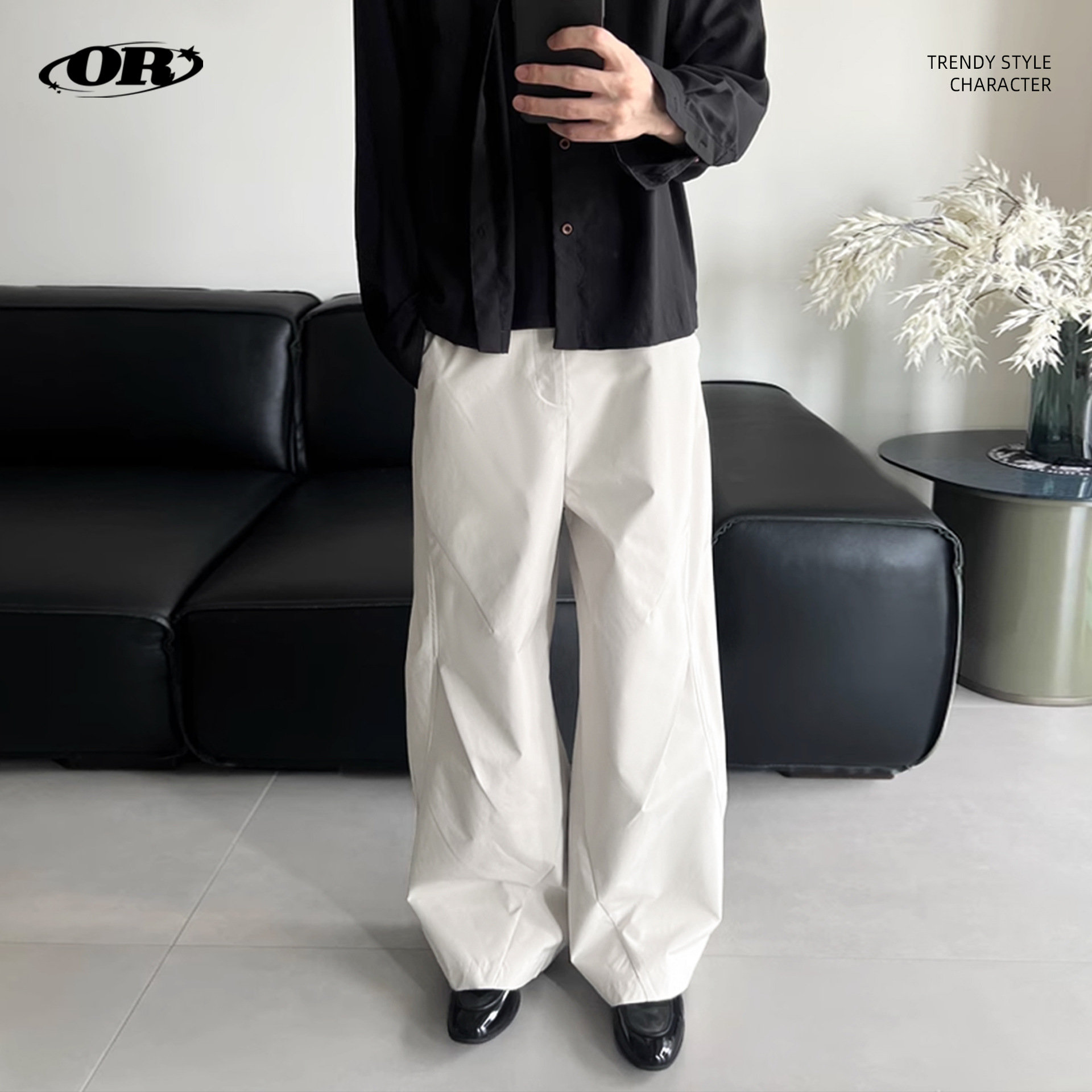 OREETA丨打褶弧形裁剪阔腿休闲裤男女美式复古宽松直筒休闲冲锋裤