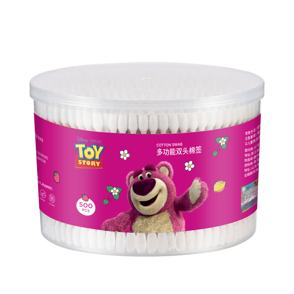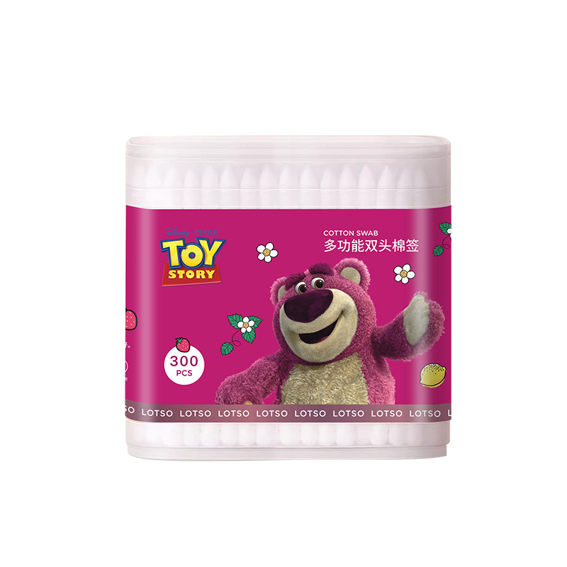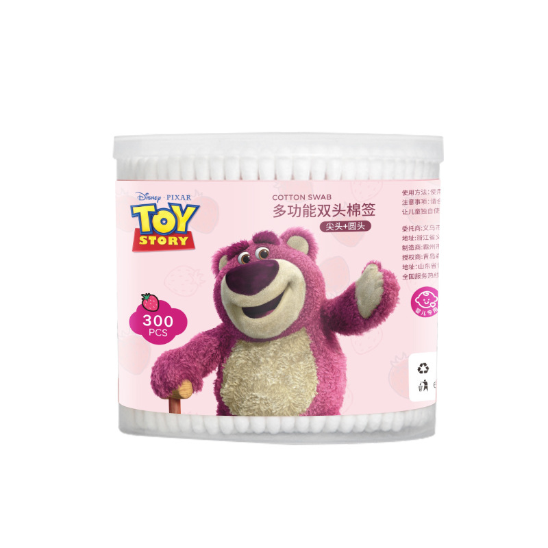 迪士尼草莓熊一次性300支双头棉签化妆木棒清洁盒装脱脂棉棒