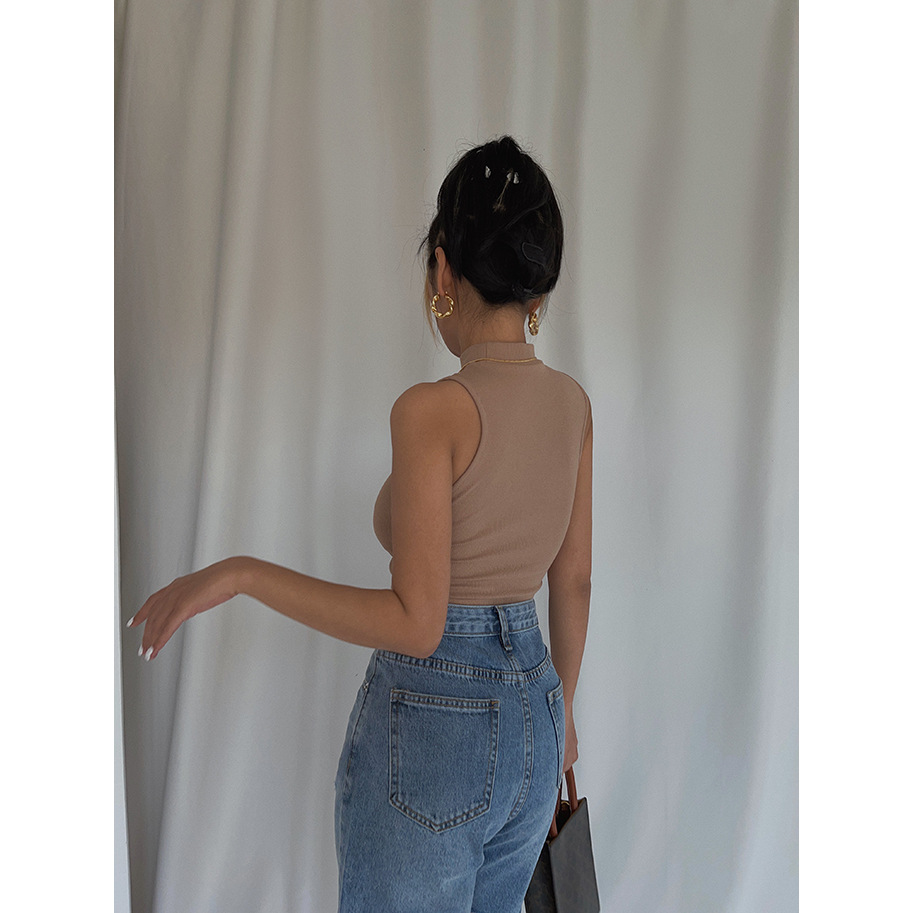 泰国 东南亚 超性感卡戴珊小高领背心收腰显胸辣妹外穿短上衣