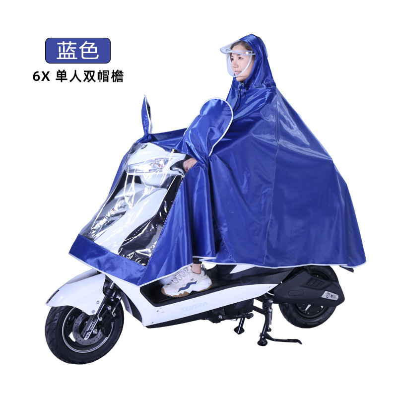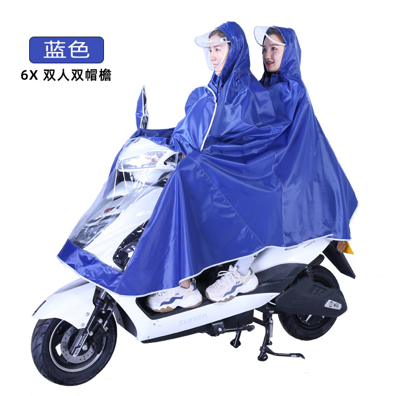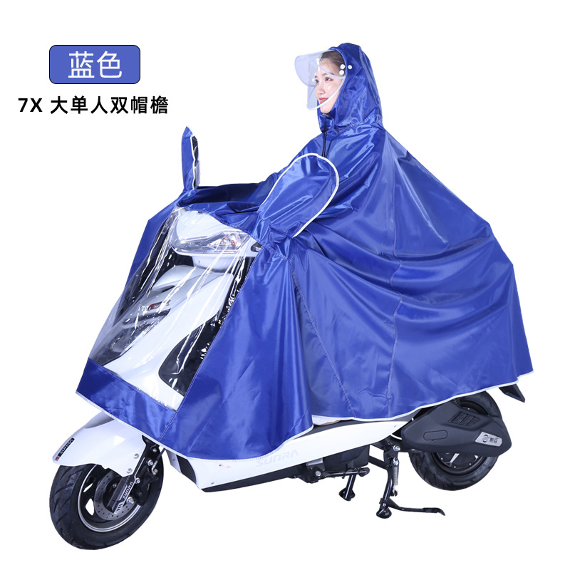 - 4XL蓝色-单人双帽檐(适合小型电动车)