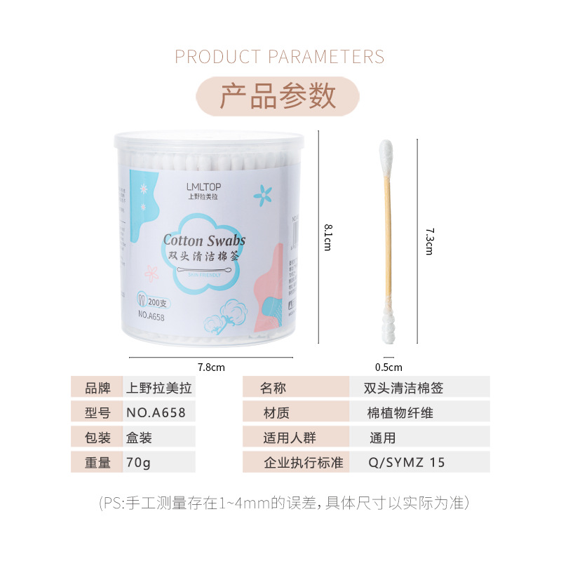 LMLTOP 圆头螺旋头化妆棉签200支装 清洁卸妆棉棒盒装A658 厂货通