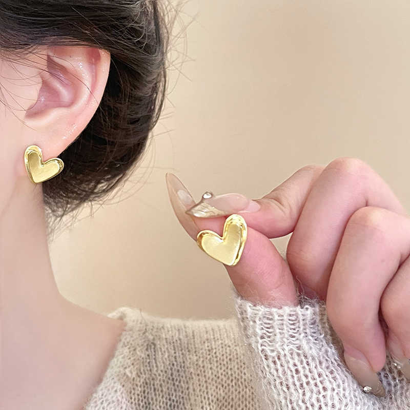 磨砂立体爱心拉丝耳钉女简约ins冷淡风百搭耳环时尚气质通勤耳饰