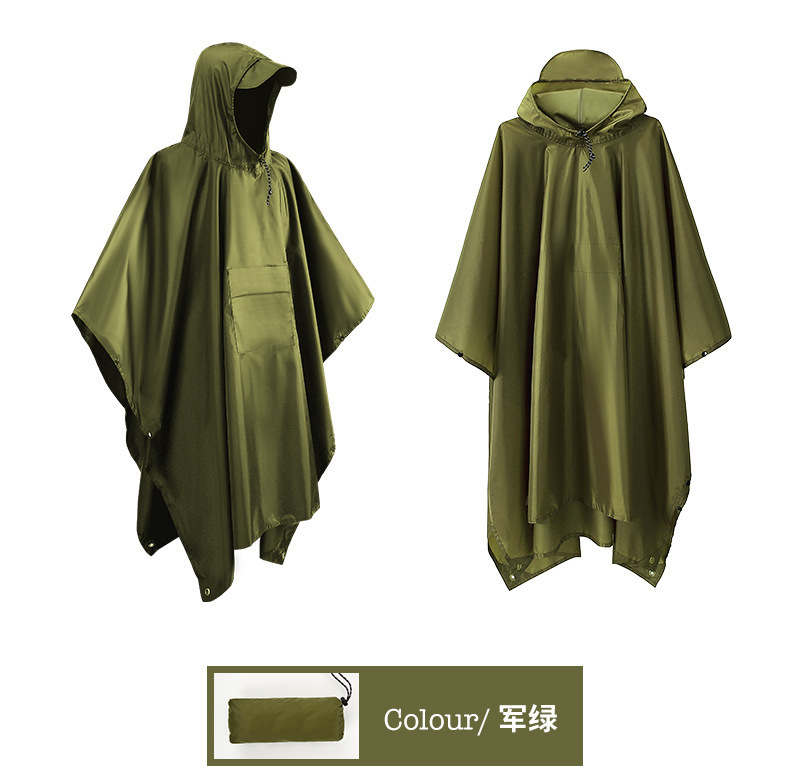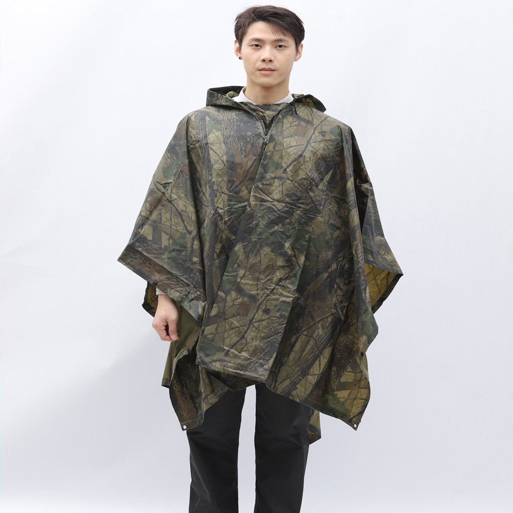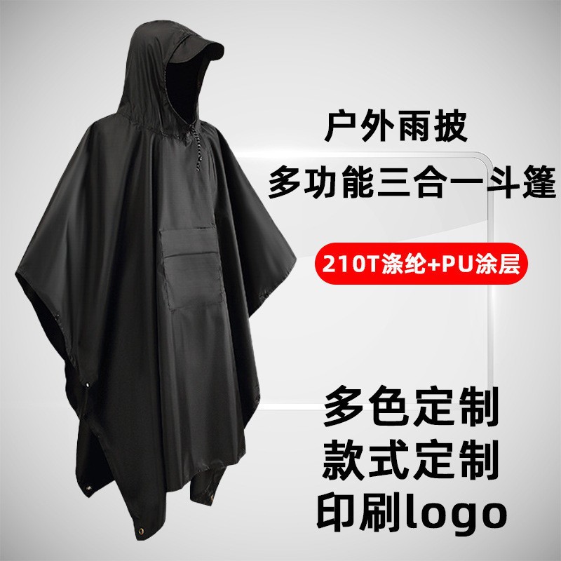 便携式斗篷雨衣天幕露营连体雨披三合一迷彩户外徒步亚马逊PU