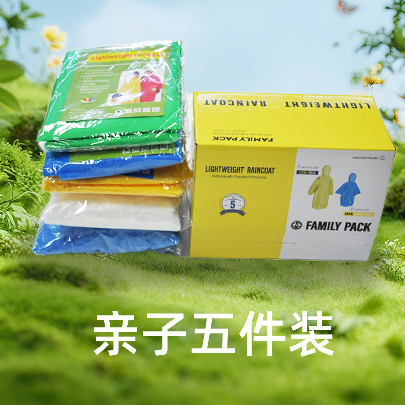 户外旅游登山上班上学成人儿童五件盒装加厚便携式一次性帽绳雨衣