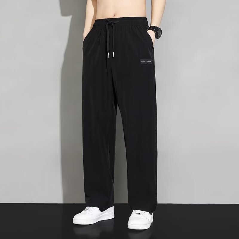 冰丝直筒裤子男士夏季薄款速干男裤潮牌夏天阔腿休闲裤男