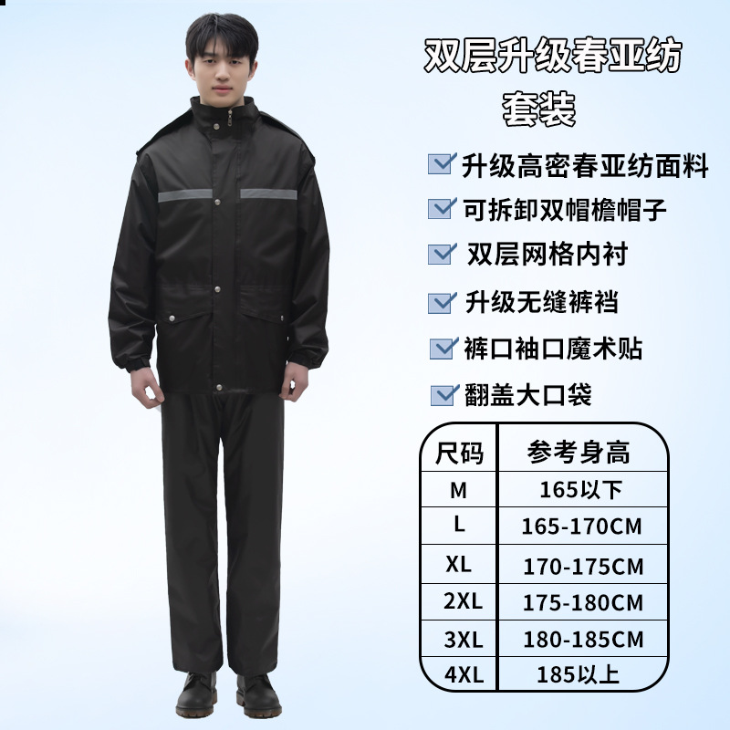 - 商务黑双层春亚纺(双帽檐双口袋经典款)