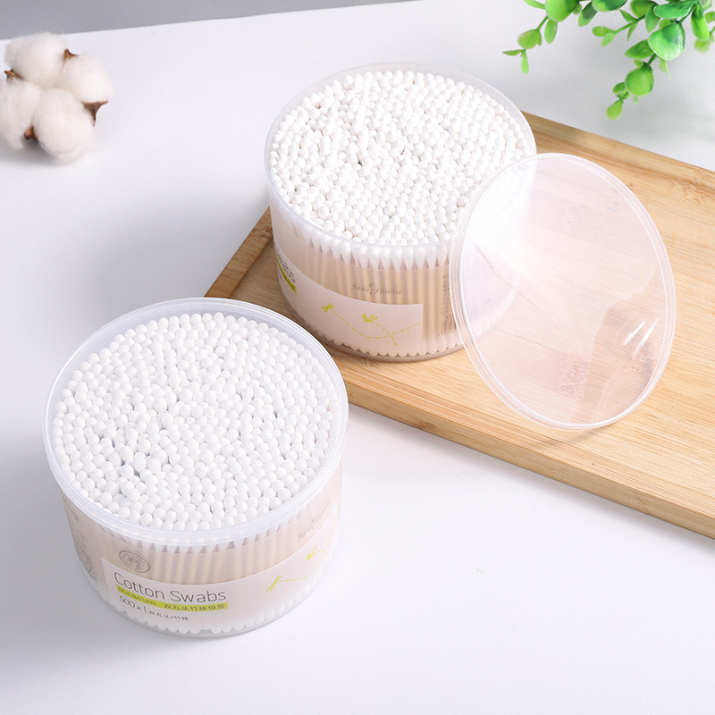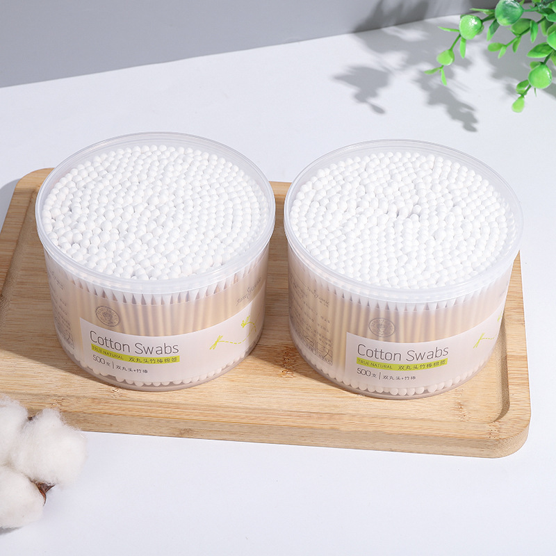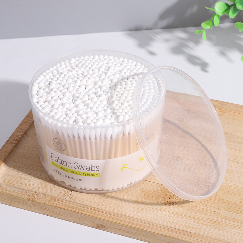 双丸头竹棒棉签脱脂棉涂指甲油眼部卸妆清洁耳朵500支盒装棉棒