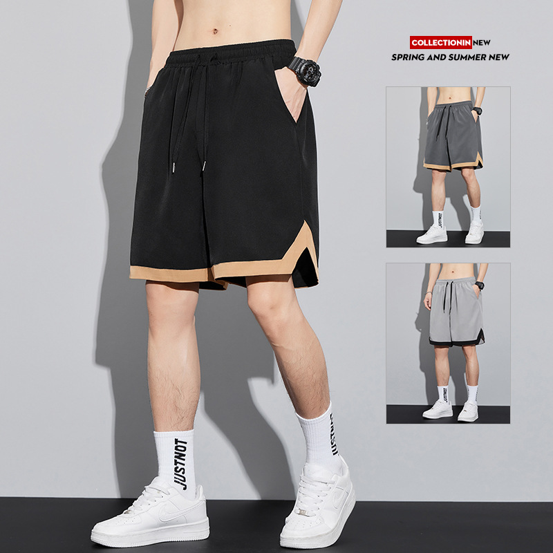 新款夏季休闲裤短裤五分裤男男女同款宽松运动潮牌港风拼接裤子男