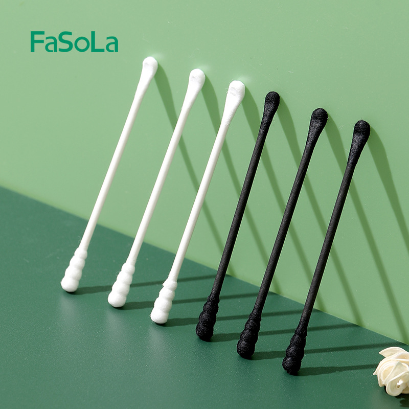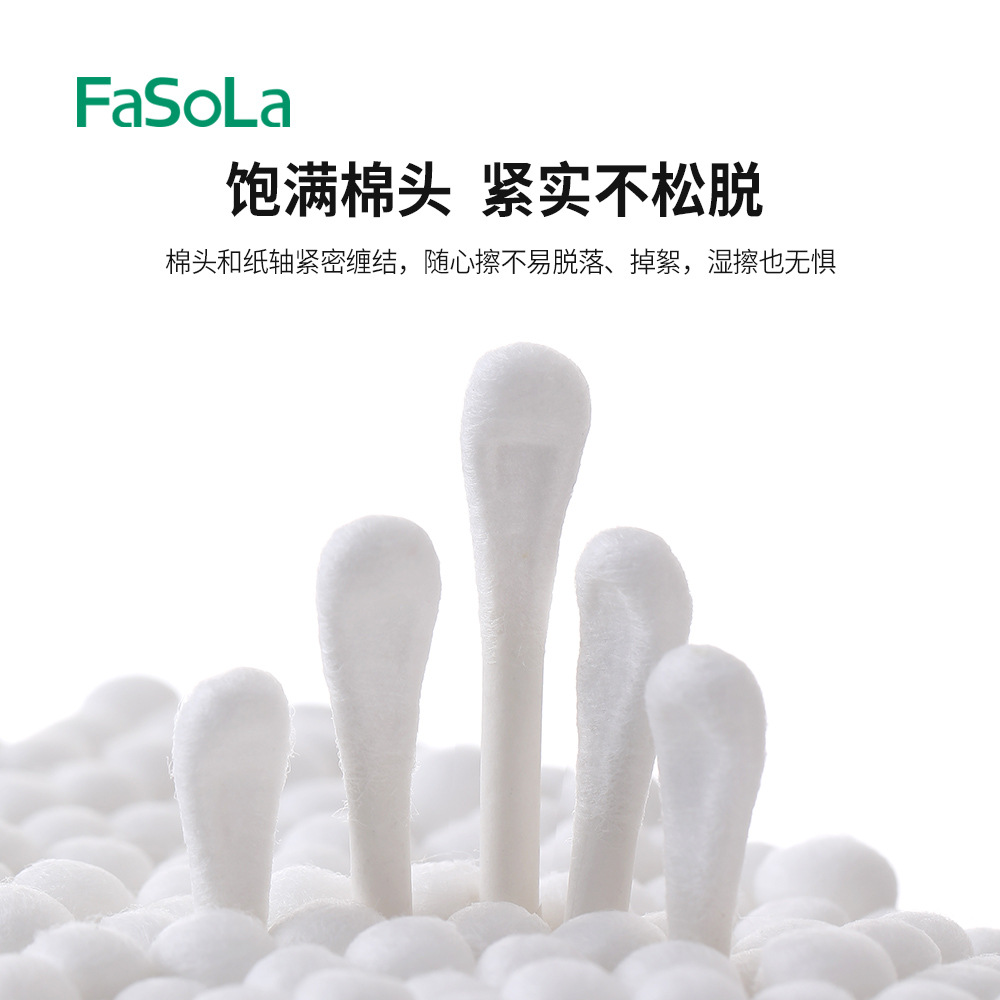 FaSoLa婴儿棉签掏耳勺小双头新生儿童鼻屎细螺旋勺头宝宝棉棒盒装